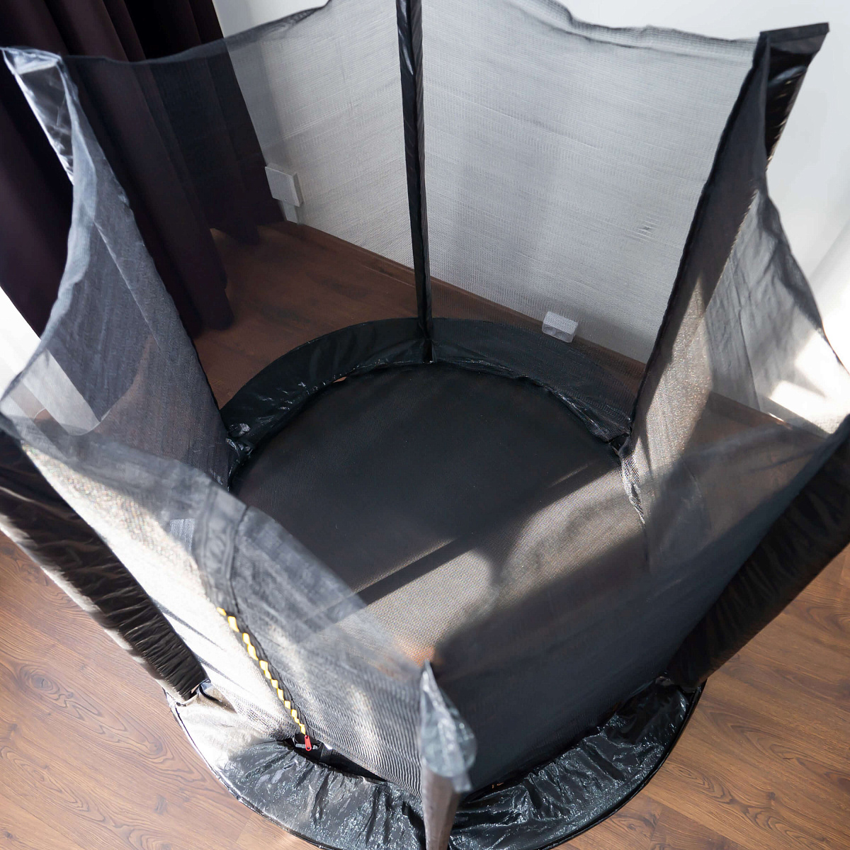 Прочная высокая сетка, тщательно натянутое упругое полотно, закрытые полотном пружины гарантируют максимальную безопасность детей во время джампинга, а накладки на ножки защищают пол от царапин. Качественные материалы обеспечивают долговечность и надежность конструкции, а также позволяют использовать батут не только как домашний, но и уличный.