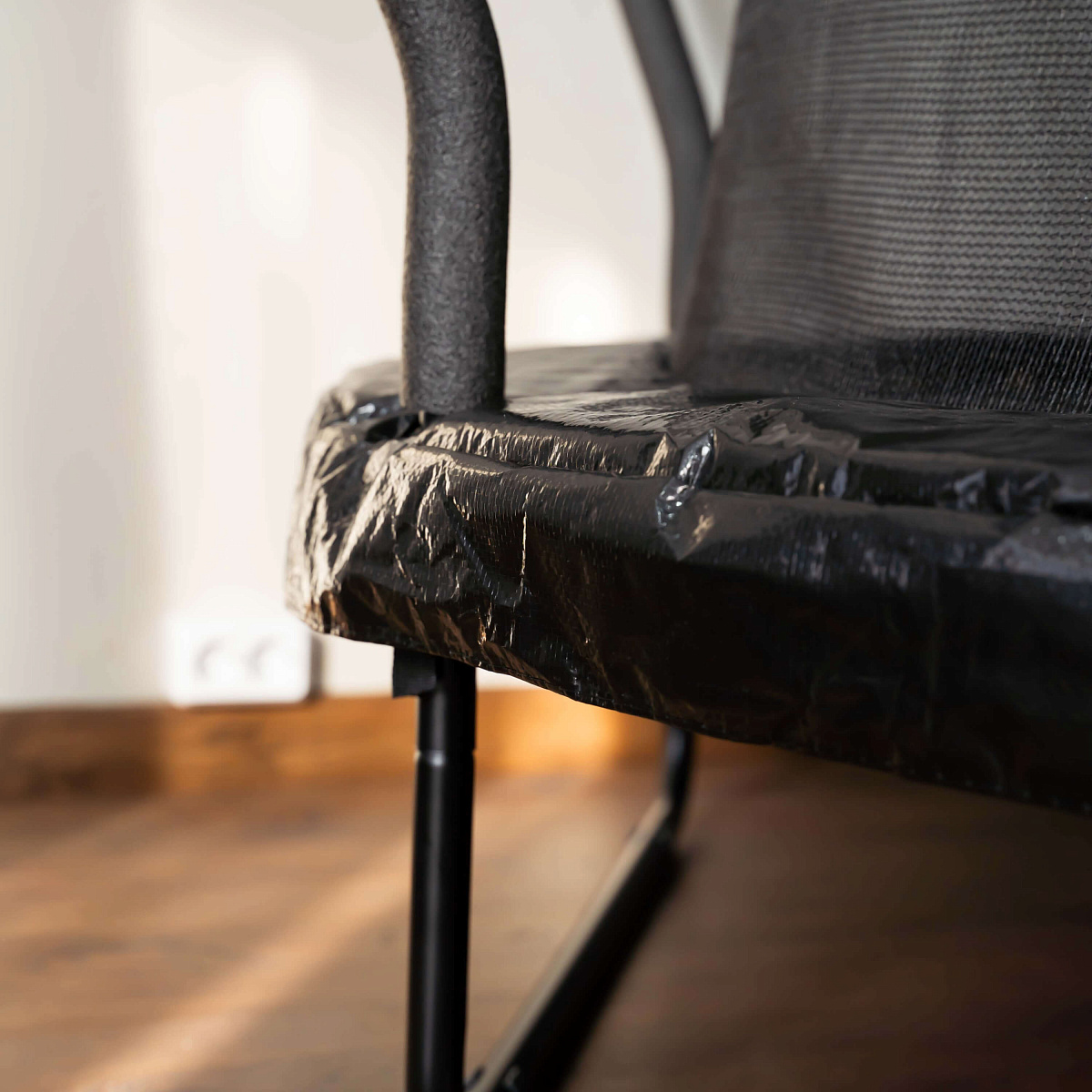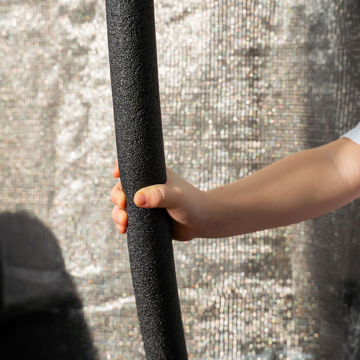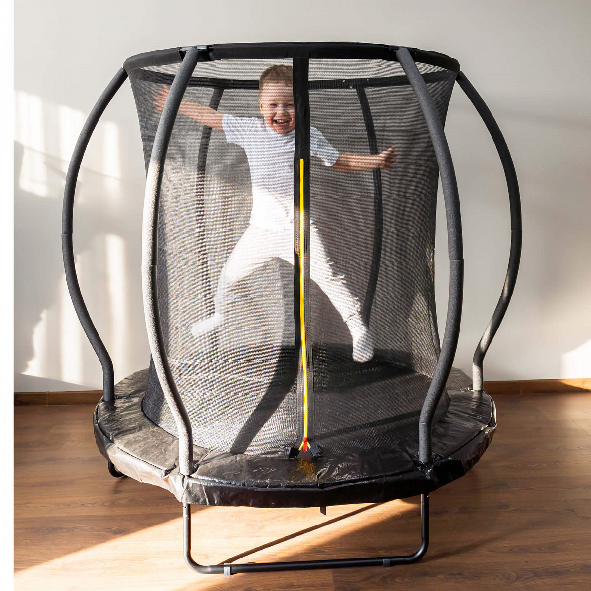 Прочная высокая сетка, тщательно натянутое упругое полотно, закрытые полотном пружины гарантируют максимальную безопасность детей во время джампинга, а накладки на ножки защищают пол от царапин. Качественные материалы обеспечивают долговечность и надежность конструкции, а также позволяют использовать батут не только как домашний, но и уличный.