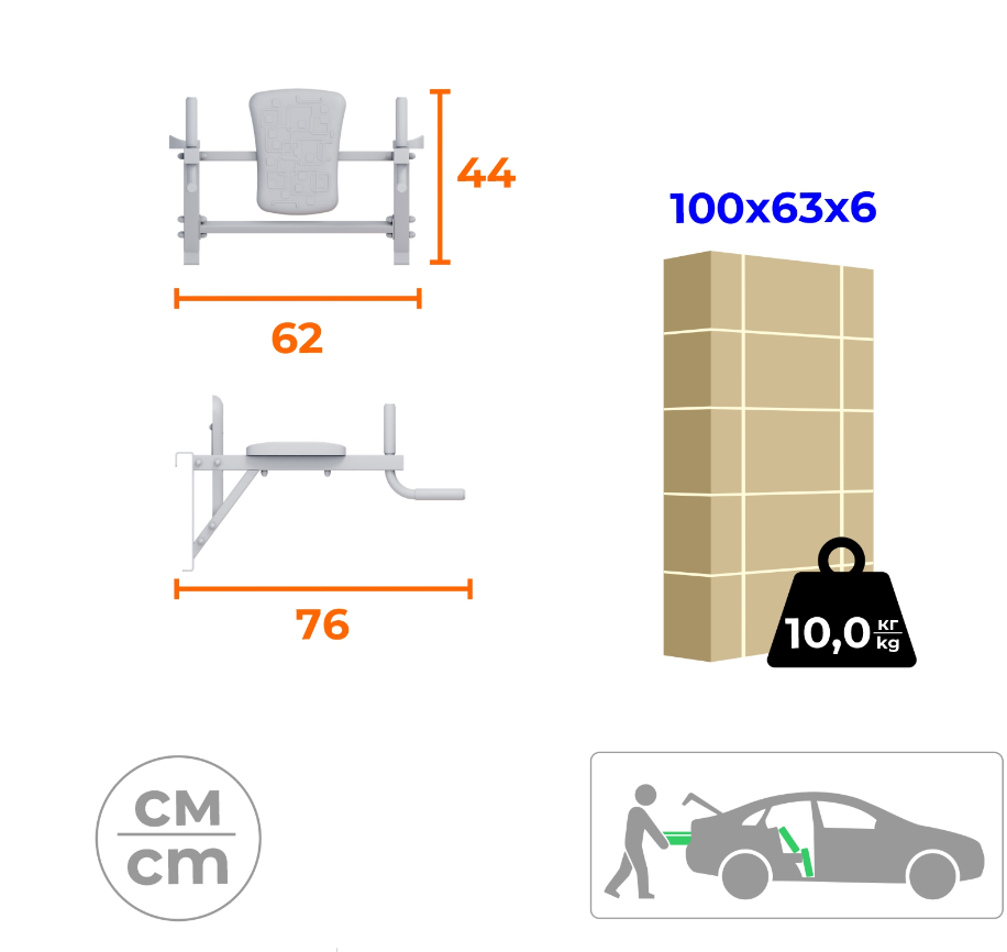 Удобные спинка и подлокотники увеличивают комфортность занятий и обеспечивают правильную фиксацию позвоночника во время тренировки, спина не будет упираться в перекладины лестницы, а локти — в металлические крепления.