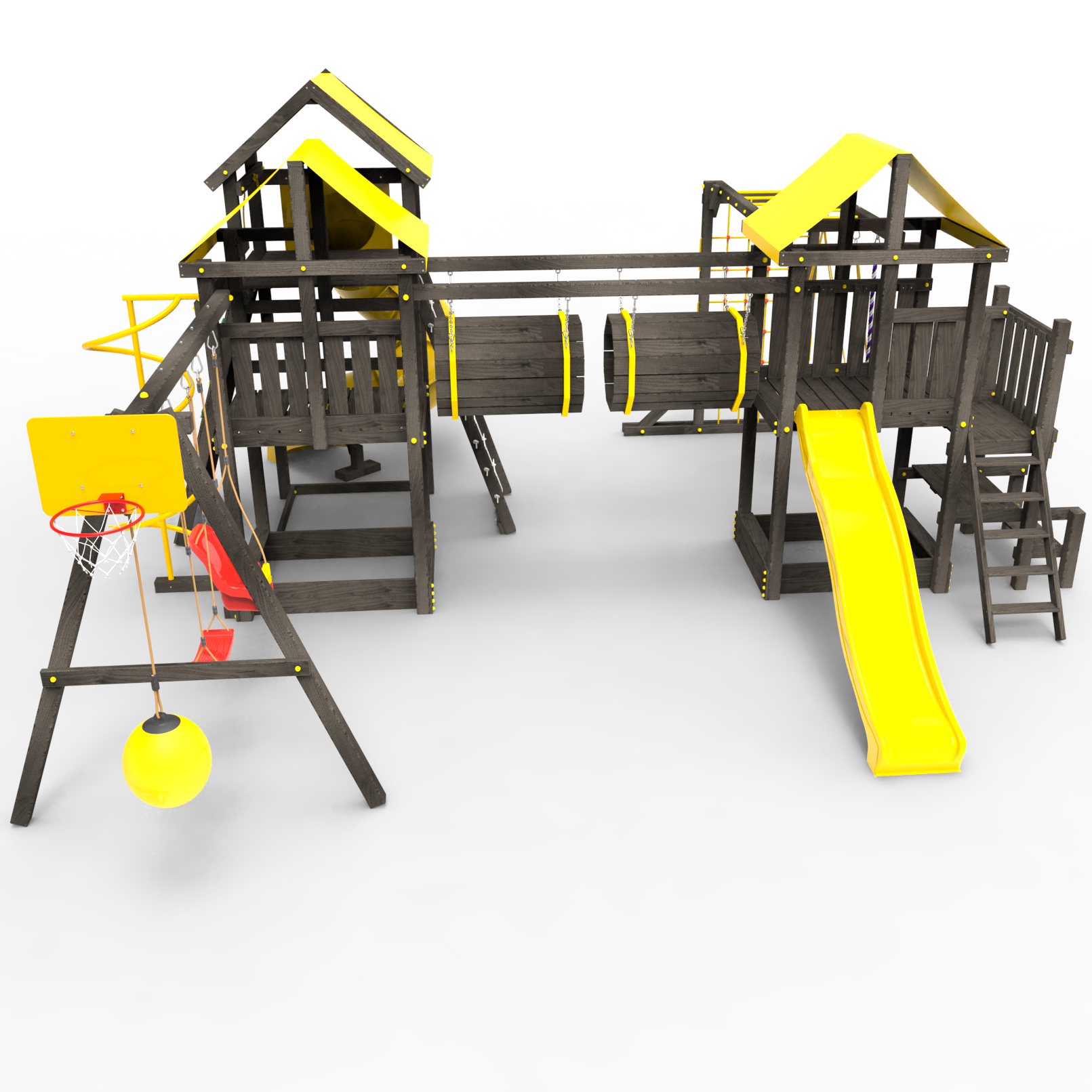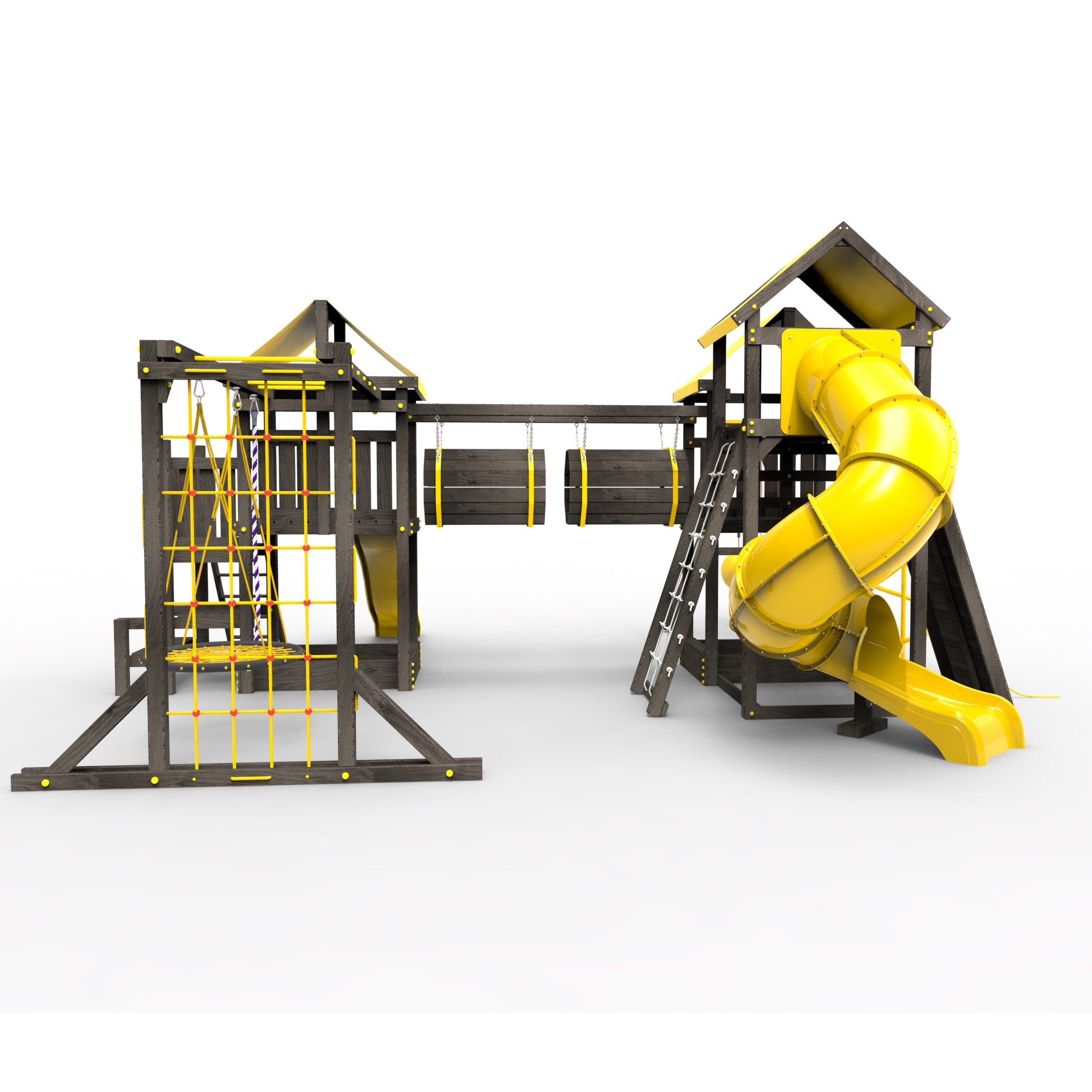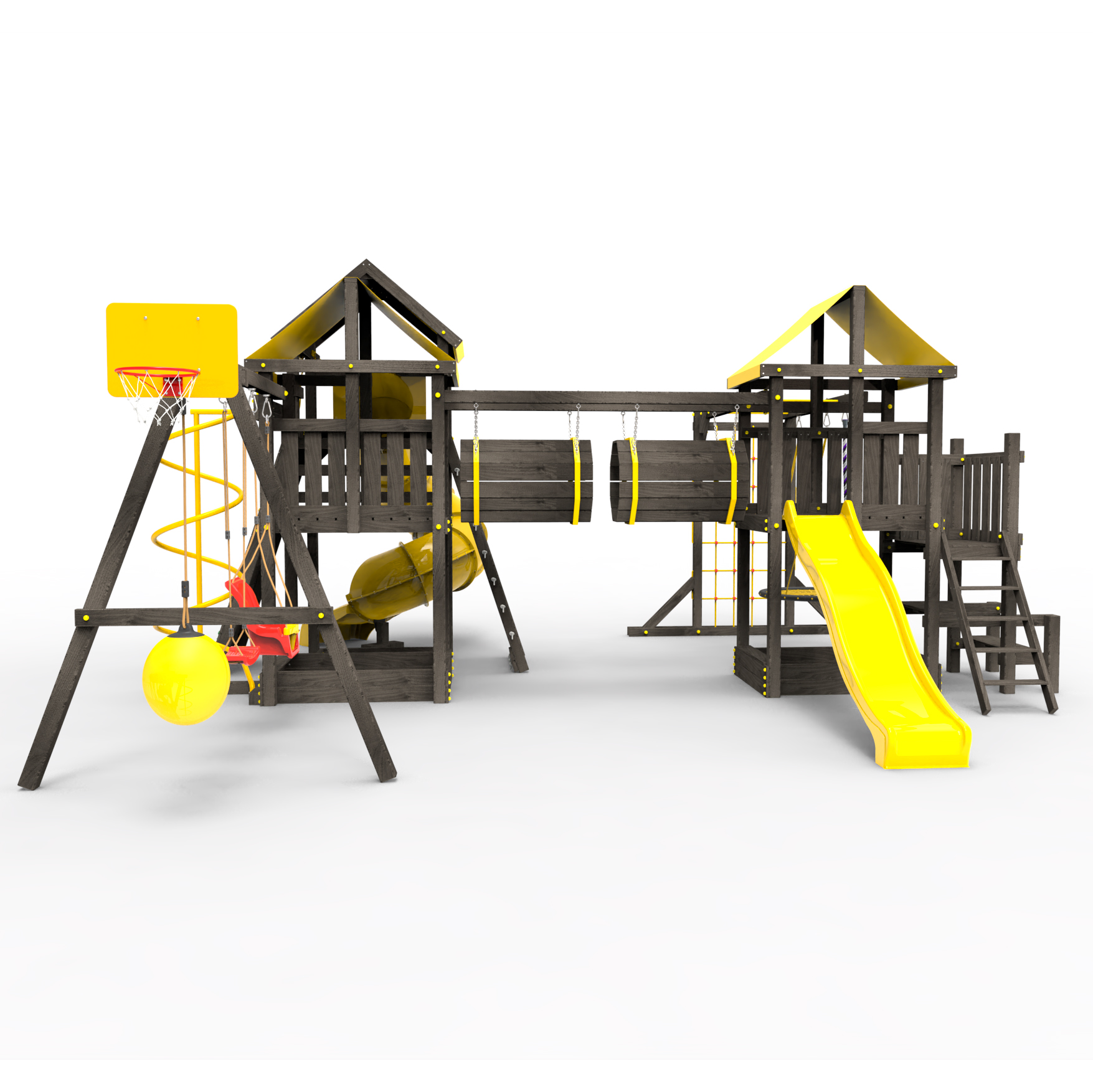 Два домика|Песочница|Лестница|Шторм-трап|Скалодром|Рукоход|Шведская стенка|Турник|Руфер|Баскетбольная корзина|Мостик|Горка|Спираль|Волна|Сеть для лазания|Качели