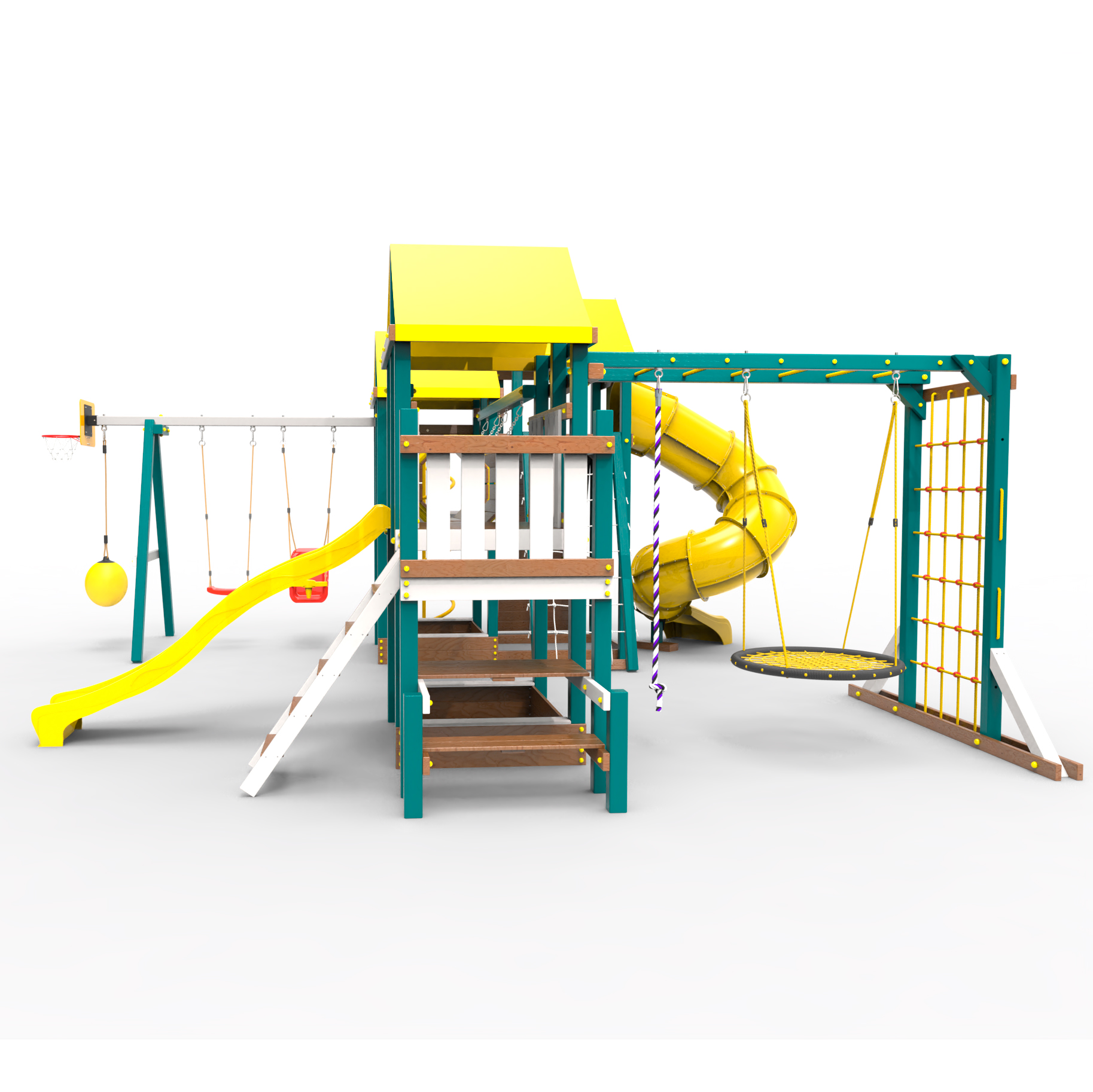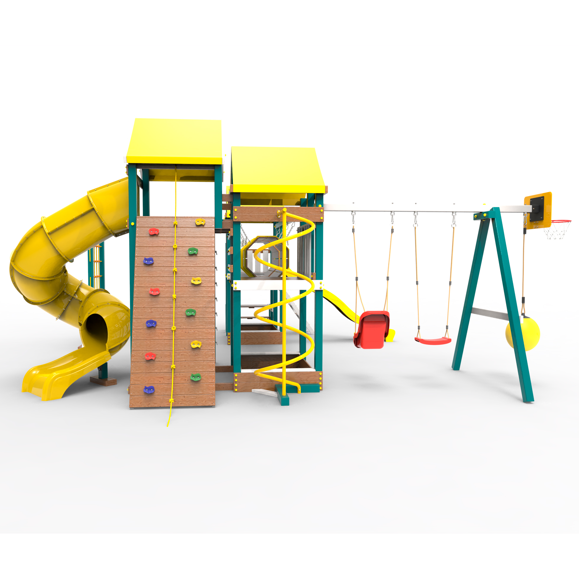 Два домика|Песочница|Лестница|Шторм-трап|Скалодром|Рукоход|Шведская стенка|Турник|Руфер|Баскетбольная корзина|Мостик|Горка|Спираль|Волна|Сеть для лазания|Качели |