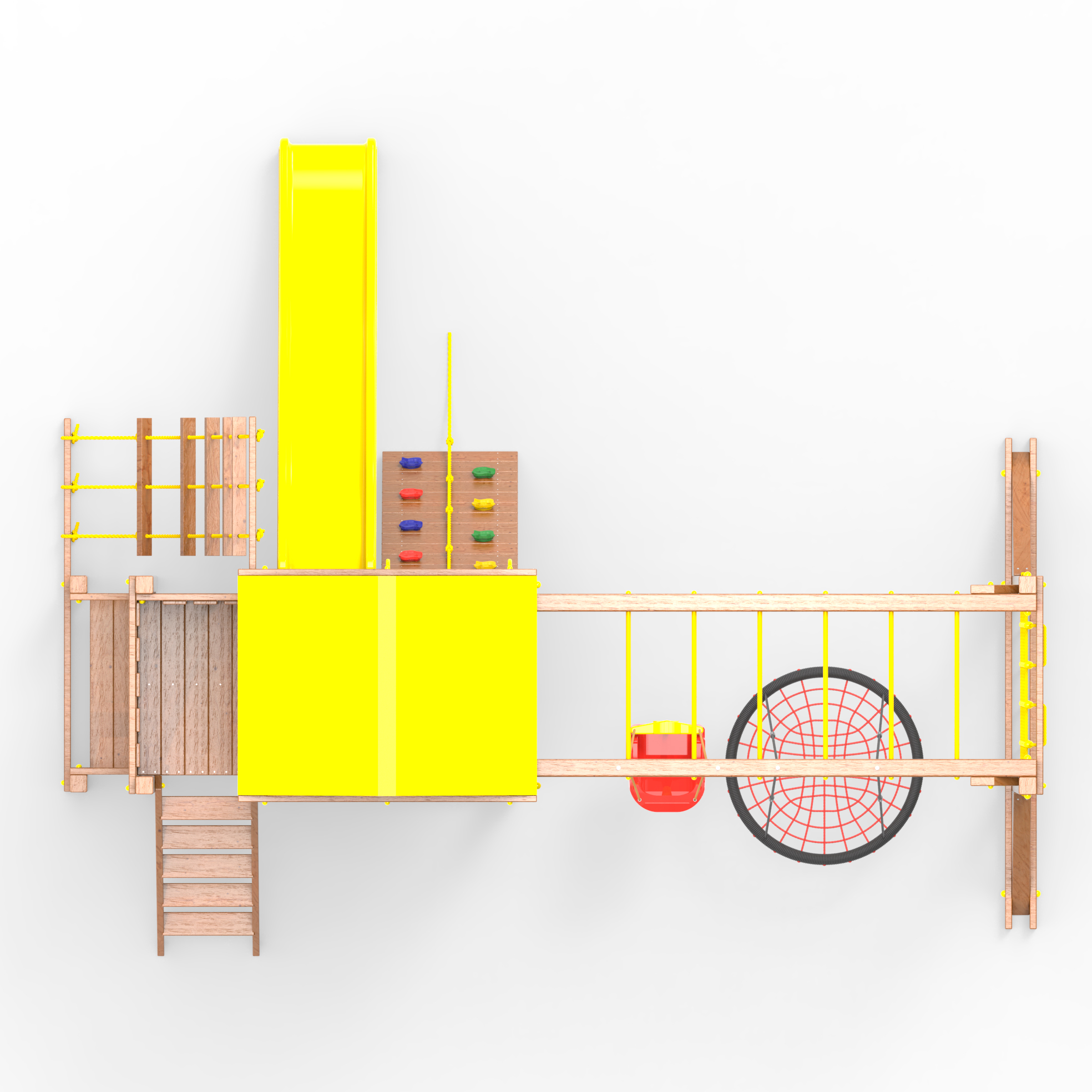 | Комплектация | Домик|Песочница|Лестница|Шторм-трап|Скалодром|Балкон|Столик с лавочками|Горка|Качели|Рукоход|Руфер|Сеть для лазания |