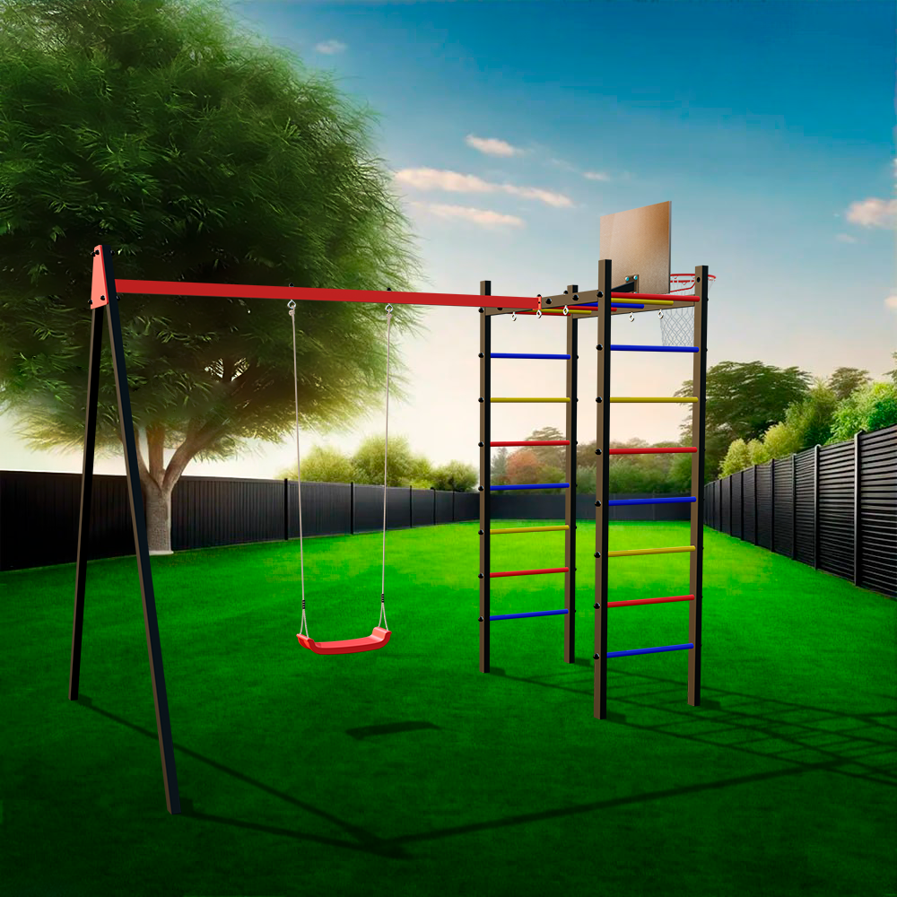 Особенность данной модели - конструкция с соединяющейся балкой для качелей, что делает его уникальным и интересным для игры на улице с друзьями!
