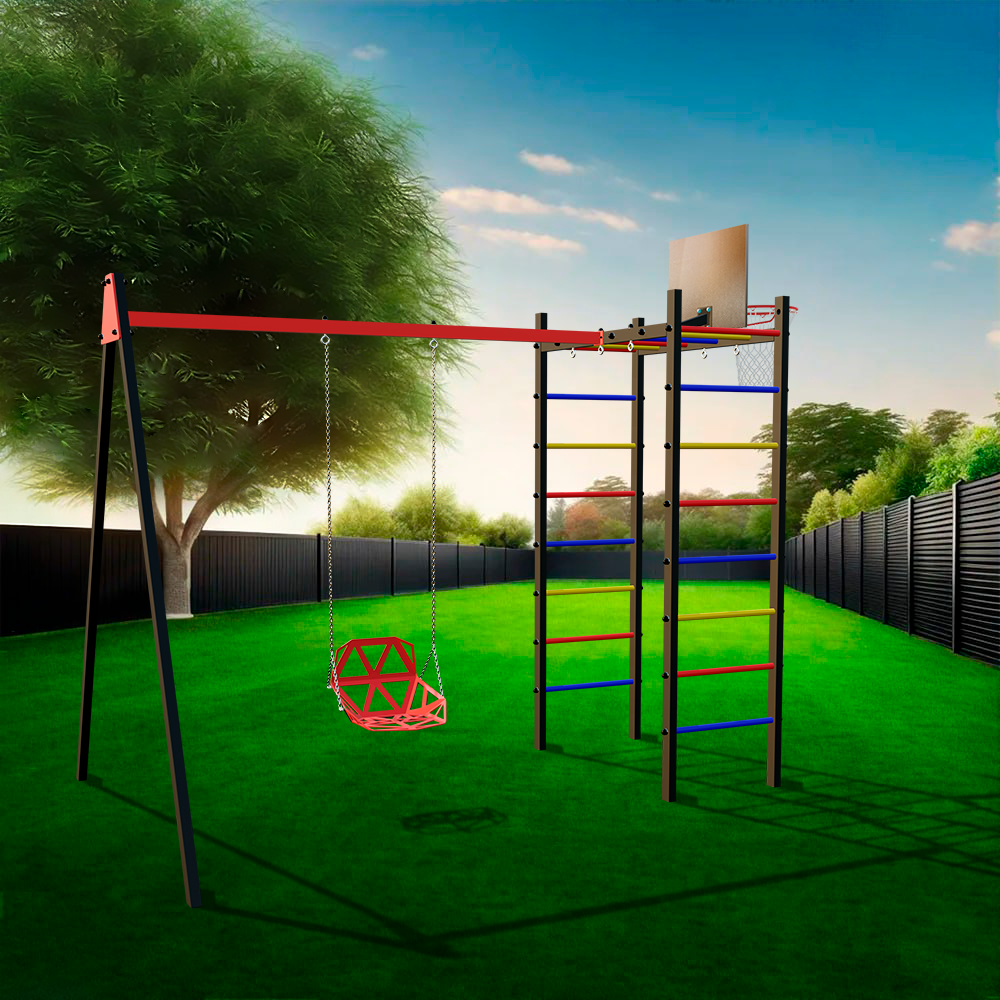 Уличный спортивно-игровой комплекс Sv Sport У3005КВ1 (Со спинкой/Подвесы на втулке/Щит баскет) в Краснодаре