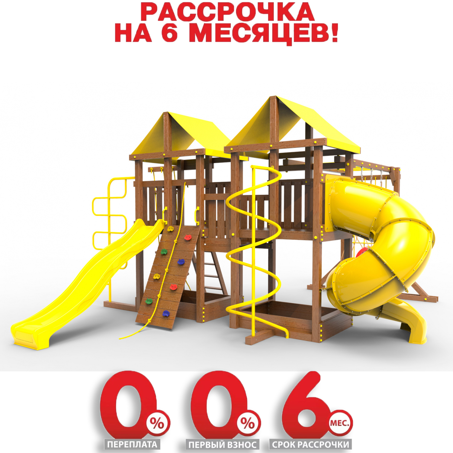 Обращаем Ваше внимание, что фактический цвет детской площадки может отличаться от представленных фото на сайте. Специфика окраски нетоксичными пропитками и красителями допускает отклонения в цветовой гамме отгружаемых изделий. Также обратите внимание, что фактический цвет может отличаться из-за цветопередачи устройства на котором Вы смотрите фото.