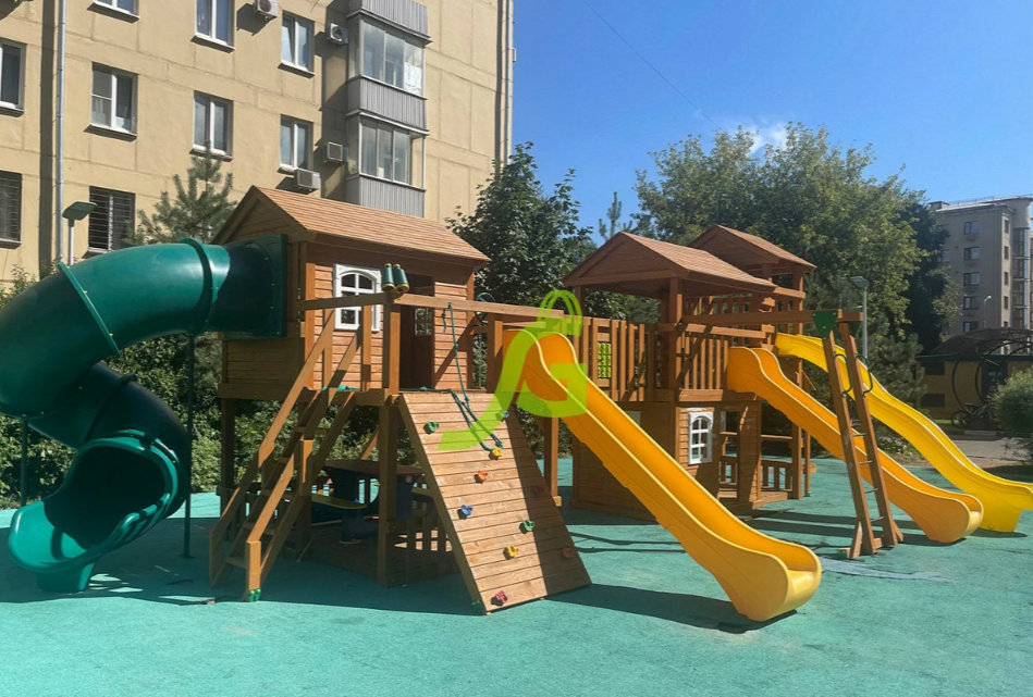 - - клеенный брус и обработанное специальными составами дерево устойчиво к внешним воздействиям и не боится влаги, поэтому комплекс будет радовать взрослых и детей безупречным внешним видом ни один сезон;