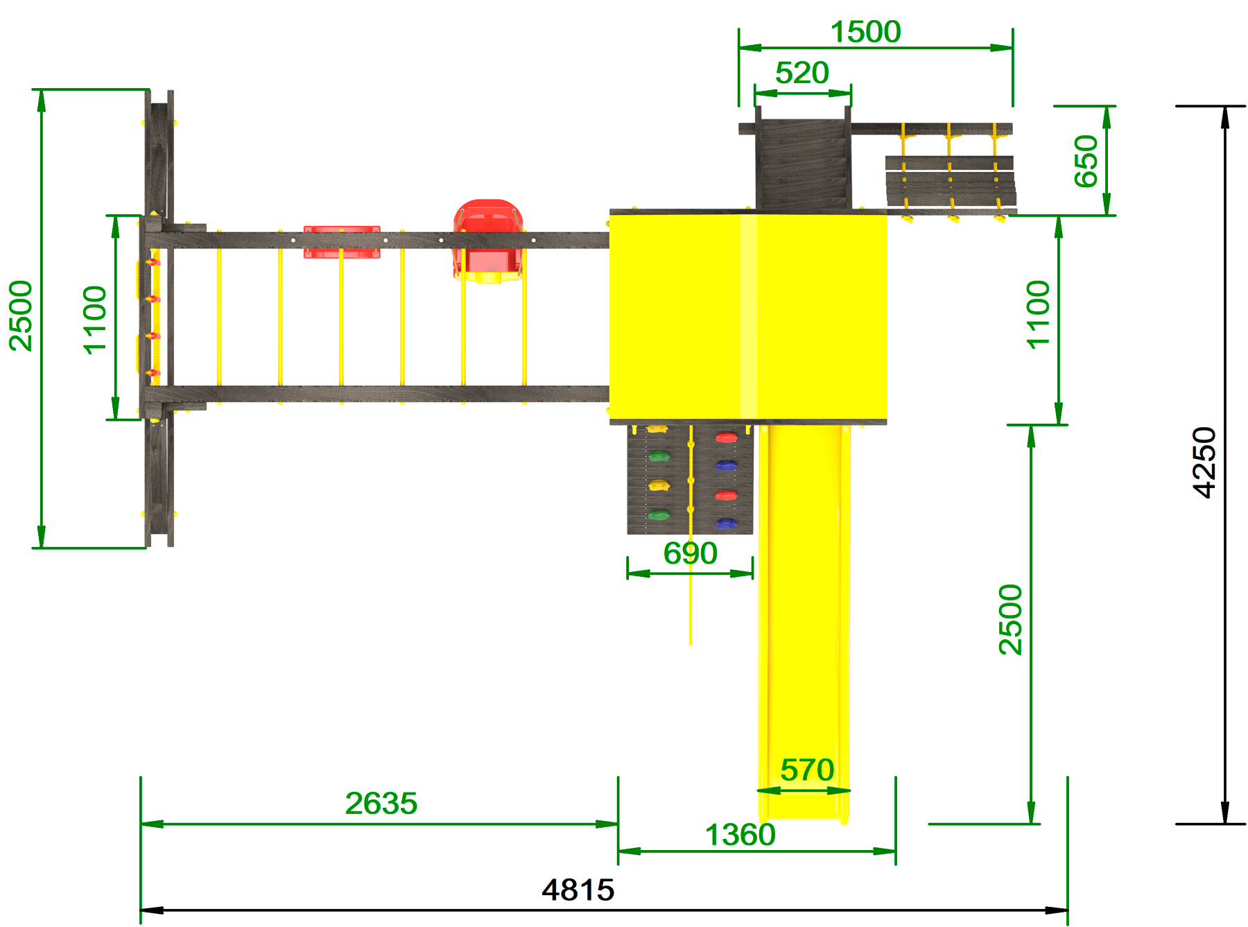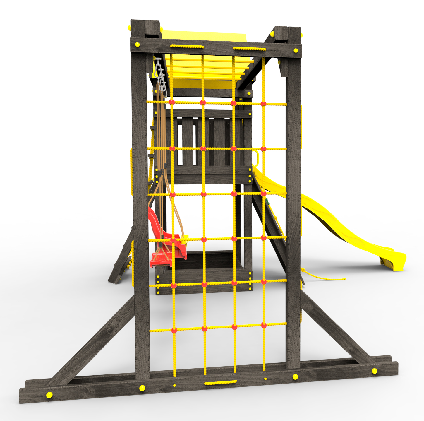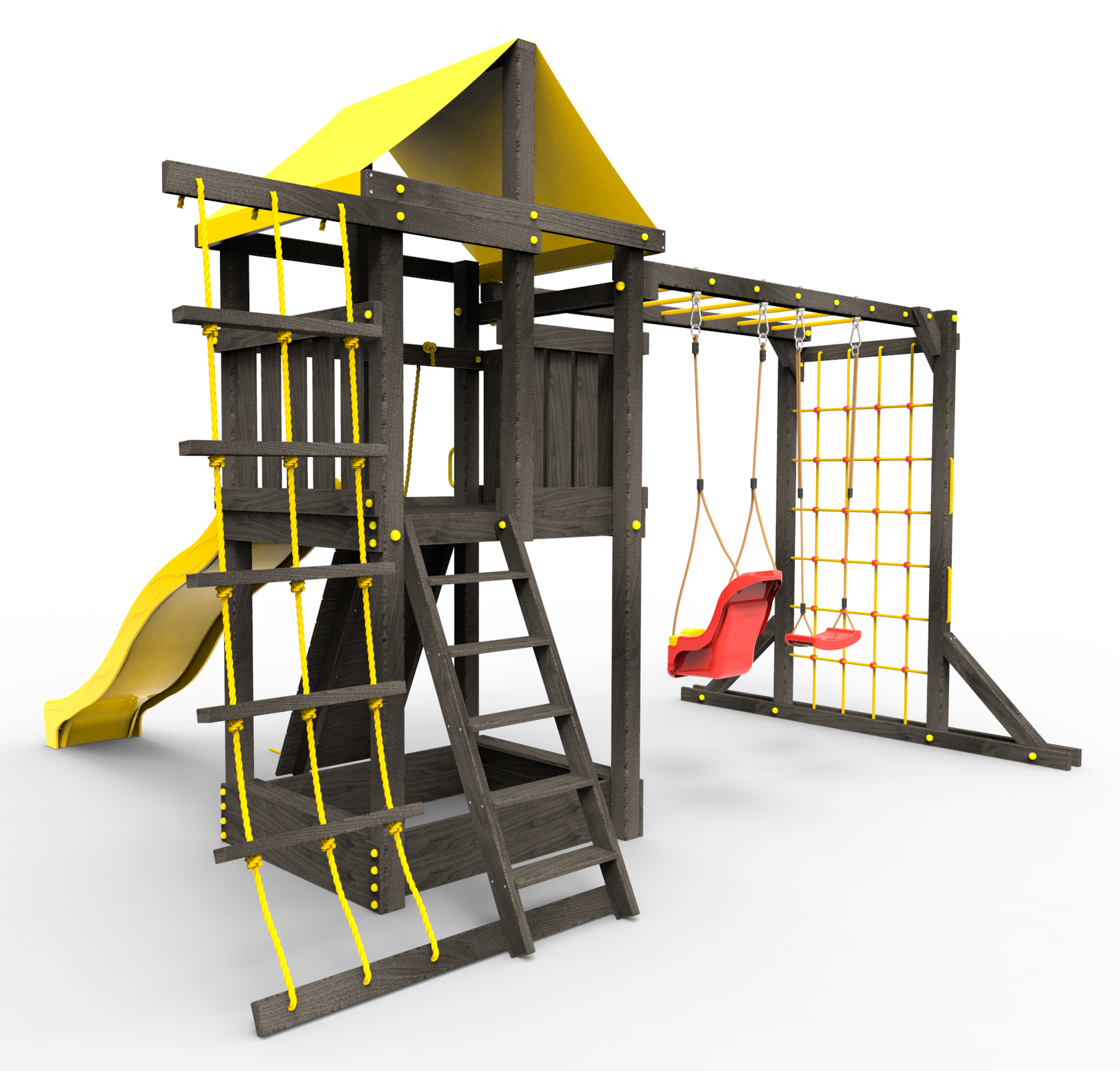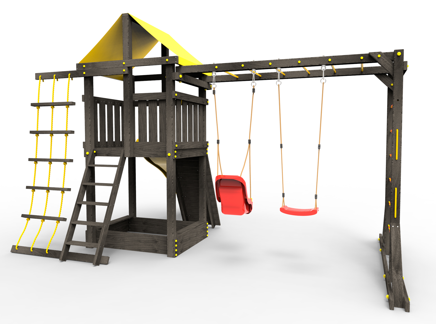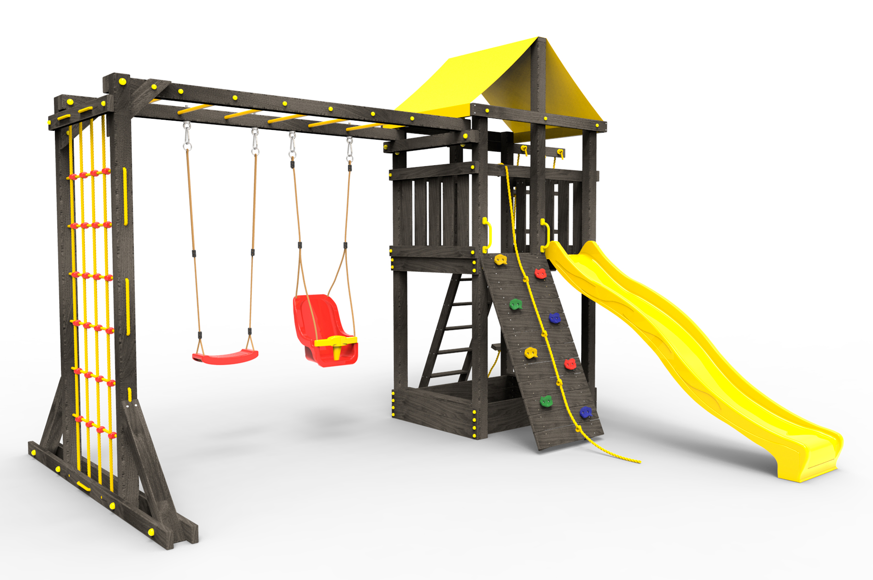Обращаем Ваше внимание, что фактический цвет детской площадки может отличаться от представленных фото на сайте. Специфика окраски нетоксичными пропитками и красителями допускает отклонения в цветовой гамме отгружаемых изделий. Также обратите внимание, что фактический цвет может отличаться из-за цветопередачи устройства на котором Вы смотрите фото. Производитель оставляет за собой право менять цвет отдельных деталей и комплектующих(включая пластик, канаты и пр.), при этом сохраняя весь функционал и характеристики товара.