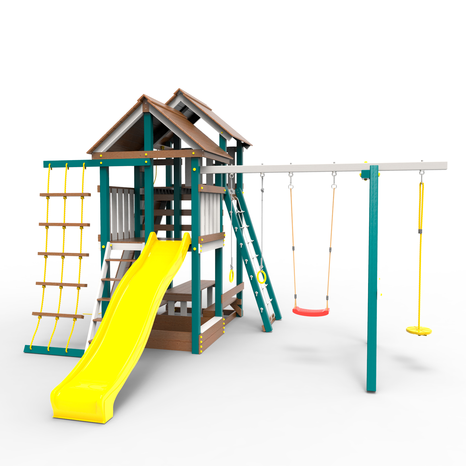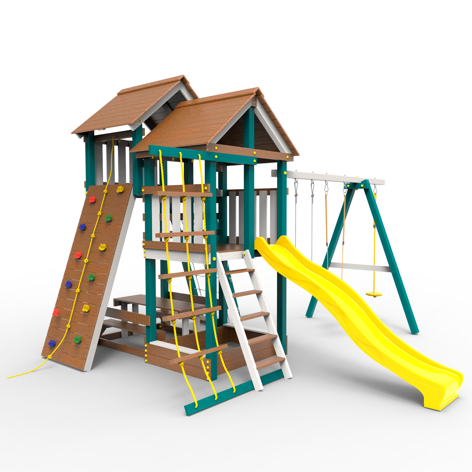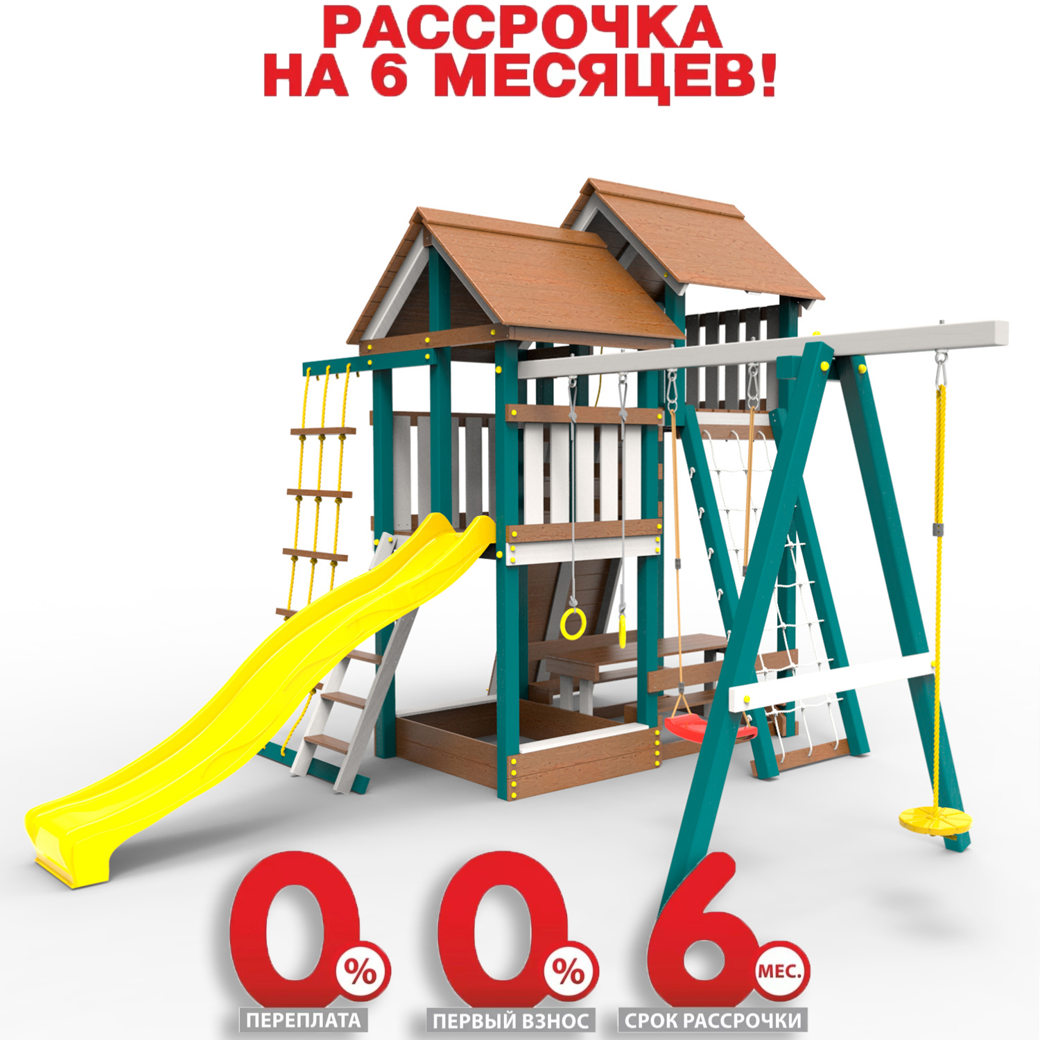 Обращаем Ваше внимание, что фактический цвет детской площадки может отличаться от представленных фото на сайте. Специфика окраски нетоксичными пропитками и красителями допускает отклонения в цветовой гамме отгружаемых изделий. Также обратите внимание, что фактический цвет может отличаться из-за цветопередачи устройства на котором Вы смотрите фото.