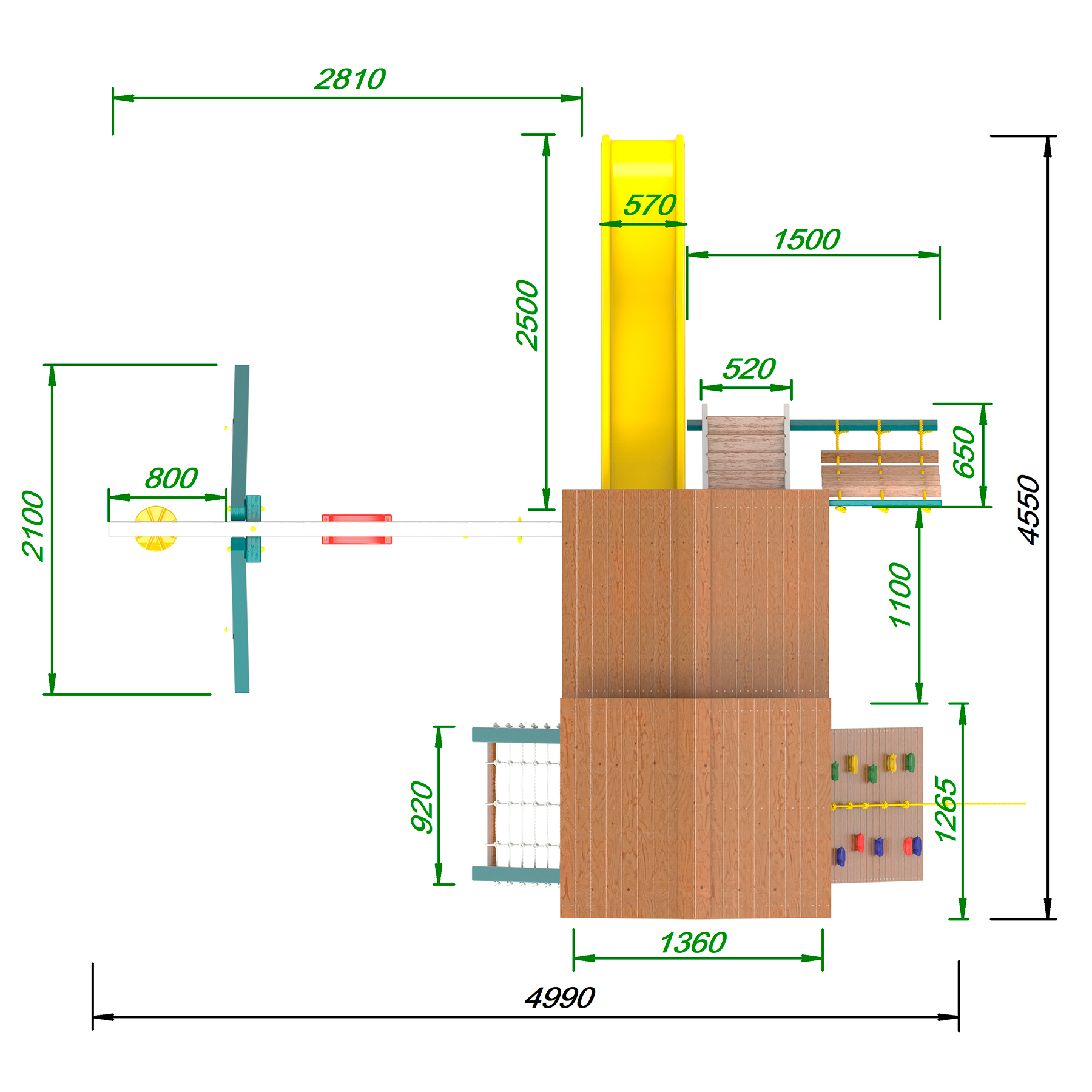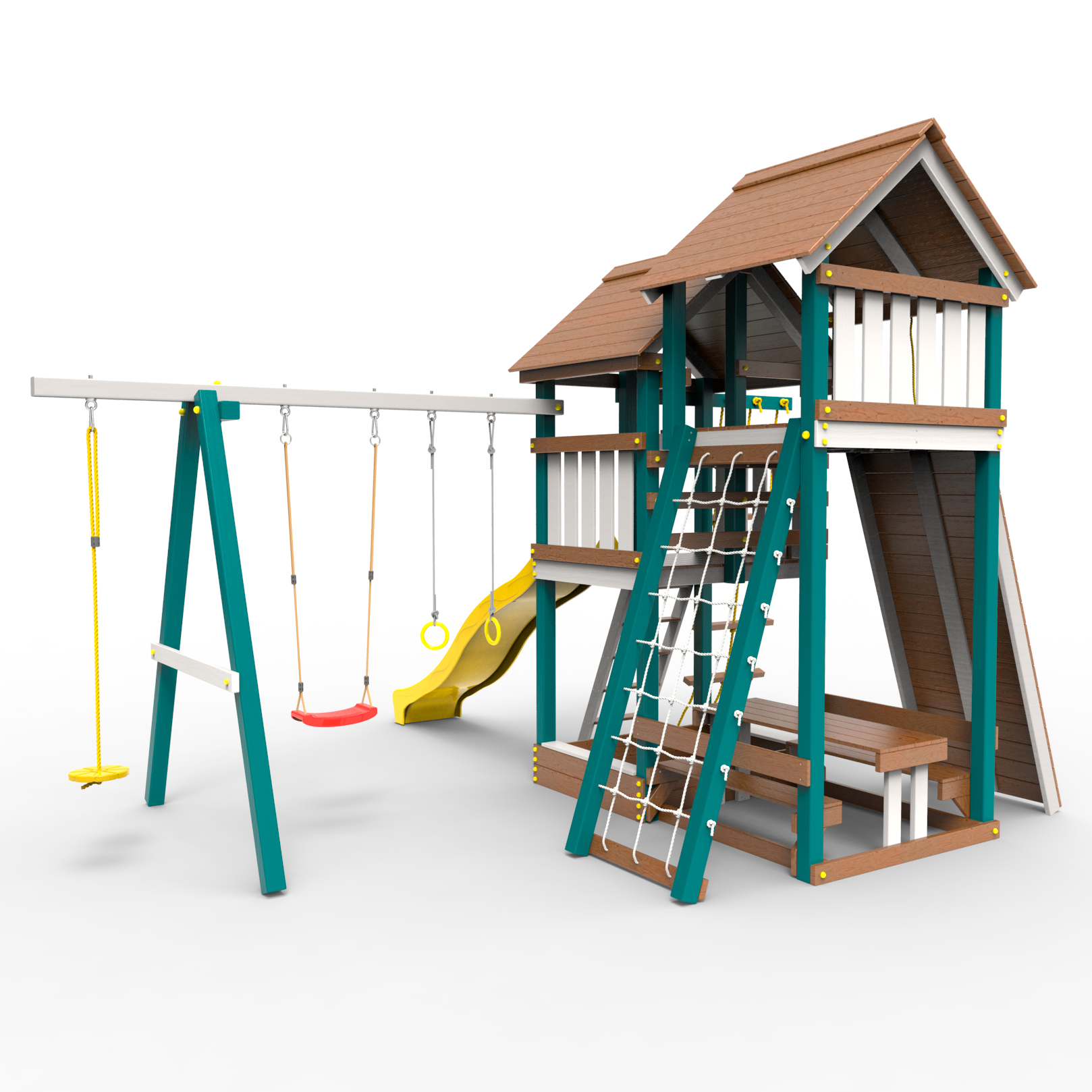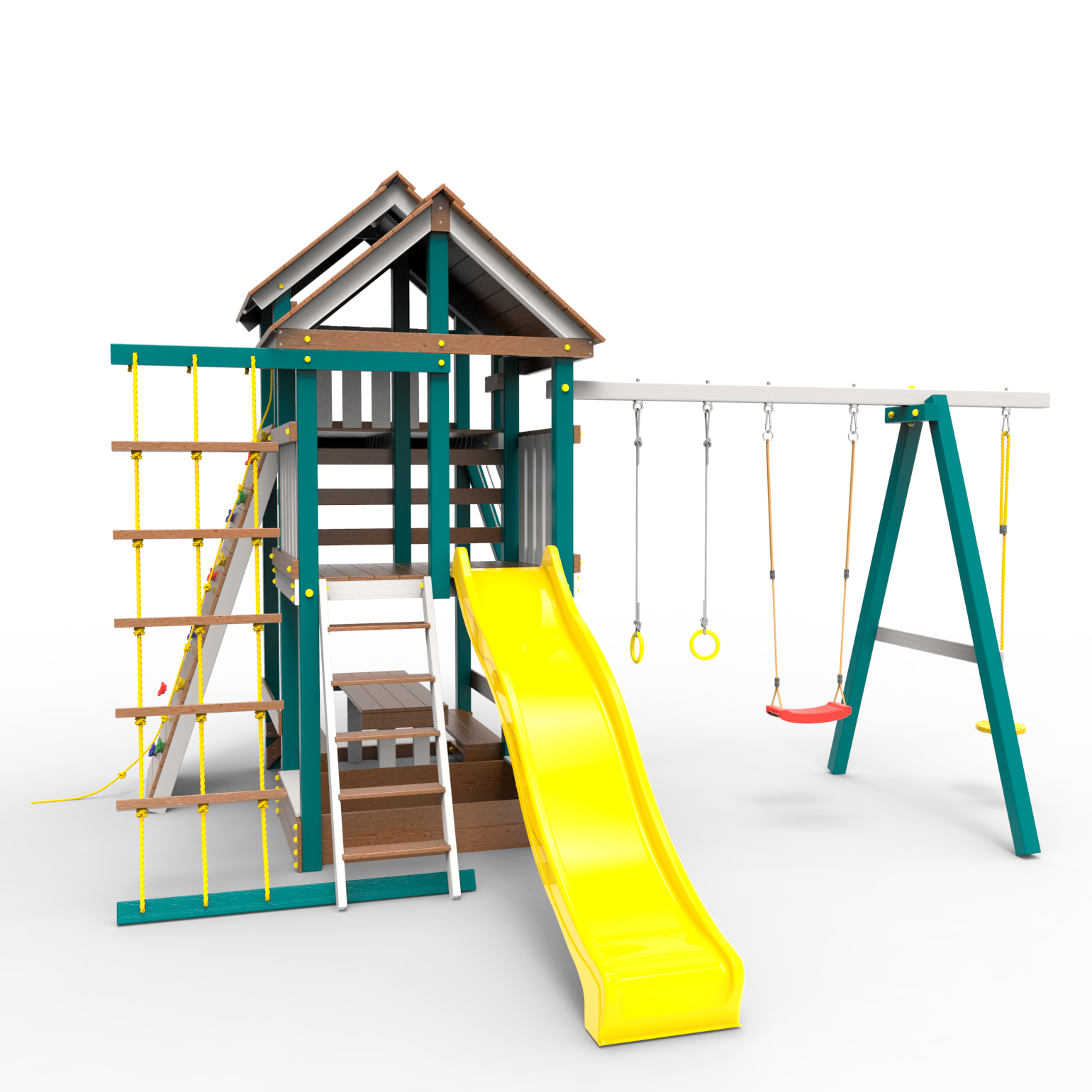 Обращаем Ваше внимание, что фактический цвет детской площадки может отличаться от представленных фото на сайте. Специфика окраски нетоксичными пропитками и красителями допускает отклонения в цветовой гамме отгружаемых изделий. Также обратите внимание, что фактический цвет может отличаться из-за цветопередачи устройства на котором Вы смотрите фото.