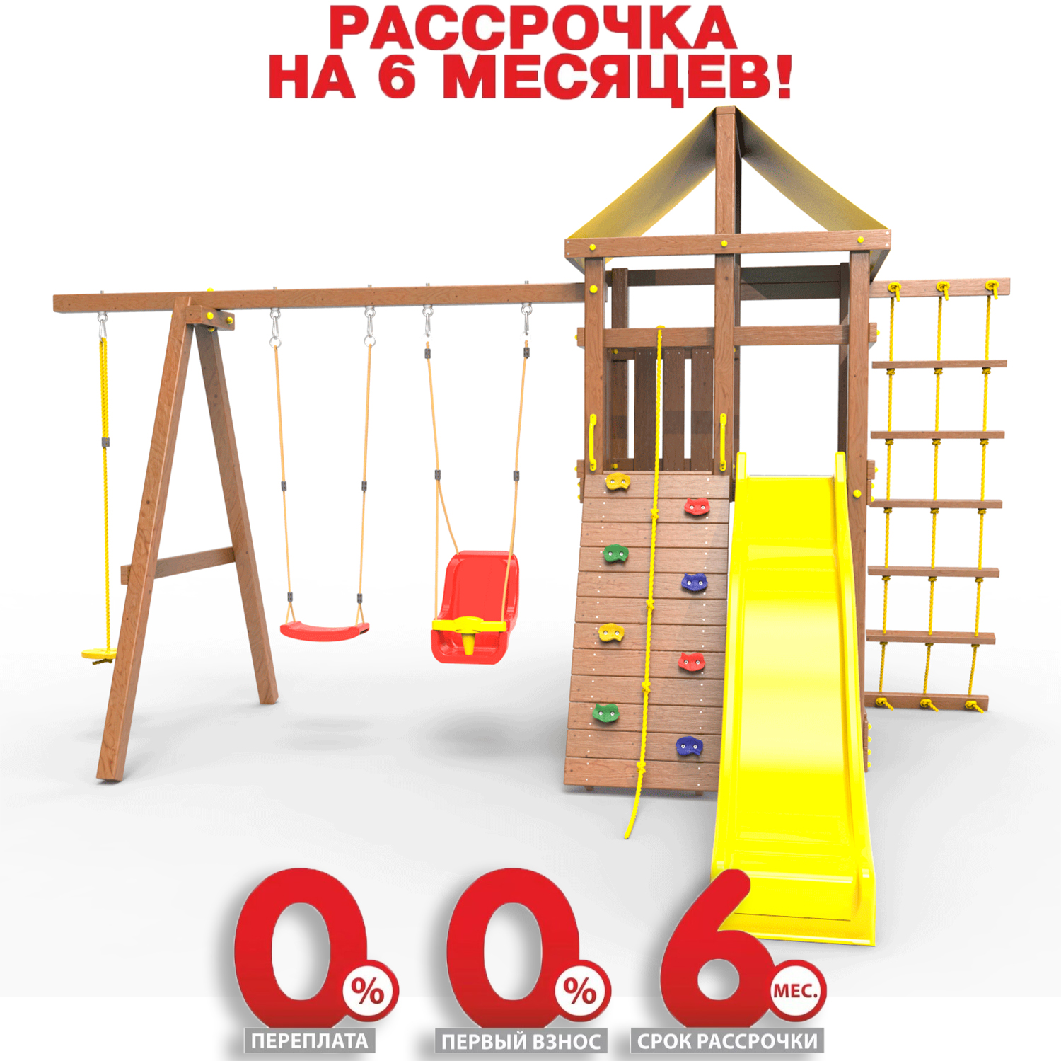 Обращаем Ваше внимание, что фактический цвет детской площадки может отличаться от представленных фото на сайте. Специфика окраски нетоксичными пропитками и красителями допускает отклонения в цветовой гамме отгружаемых изделий. Также обратите внимание, что фактический цвет может отличаться из-за цветопередачи устройства на котором Вы смотрите фото.