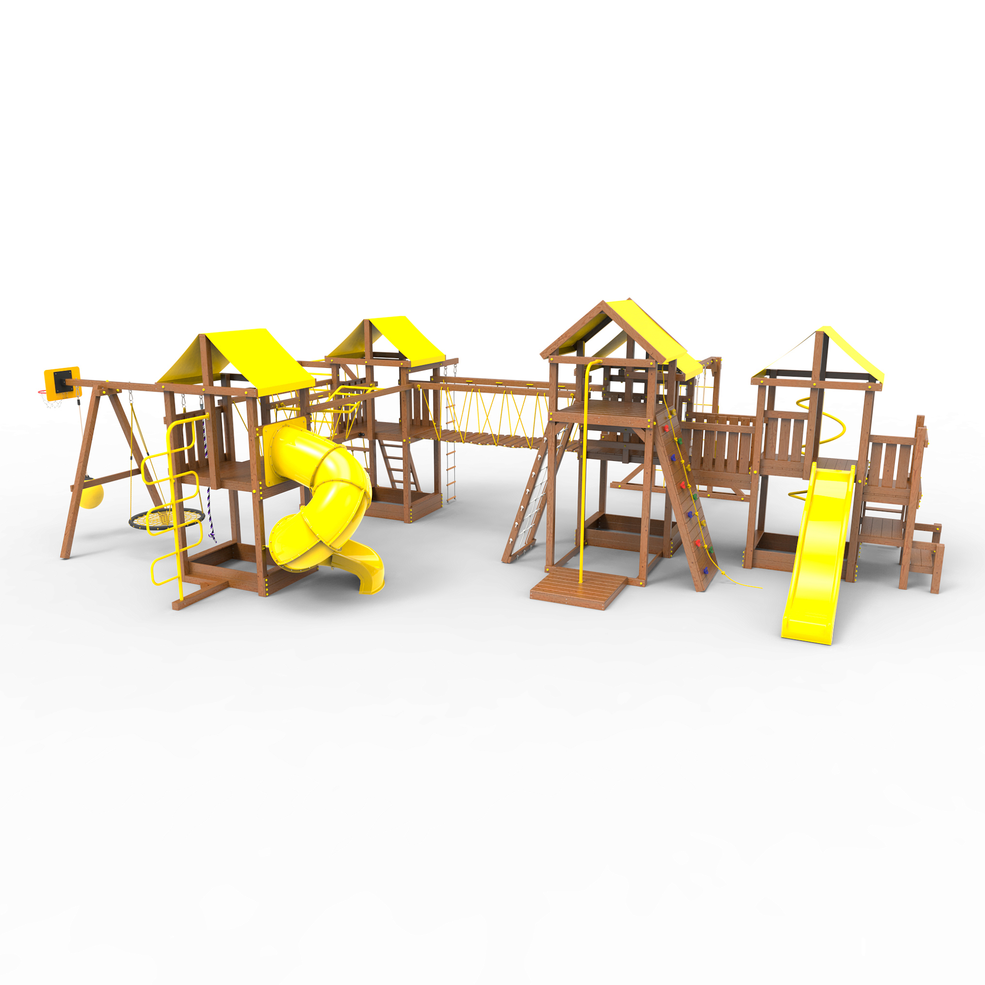 | Комплектация | Высокий домик|Два домика|Песочница|Лестница|Шторм-трап|Скалодром|Шведская стенка|Рукоход|Турник|Руфер|Балкон|Столик с лавочками|Баскетбольная корзина|Мостик|Подвесной мост|Горка|Винтовая труба|Спираль|Волна|Пожарный шест|Сеть для лазания|Качели|ЗигЗаг|Переправа |