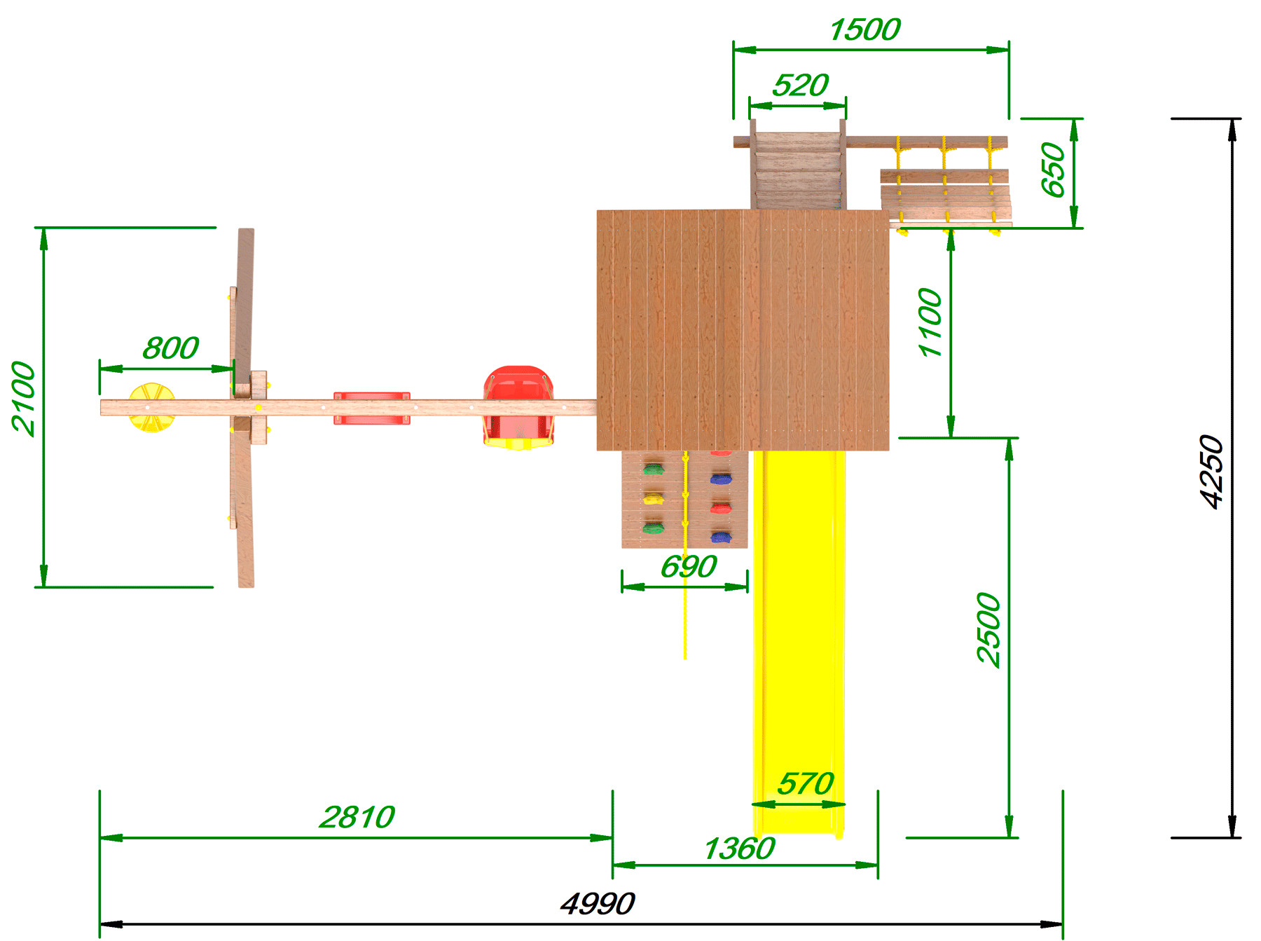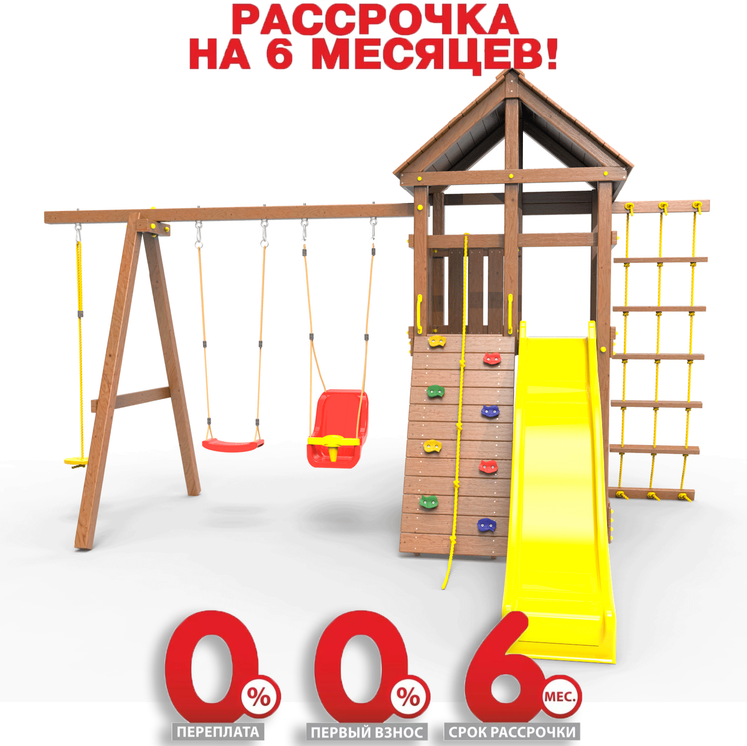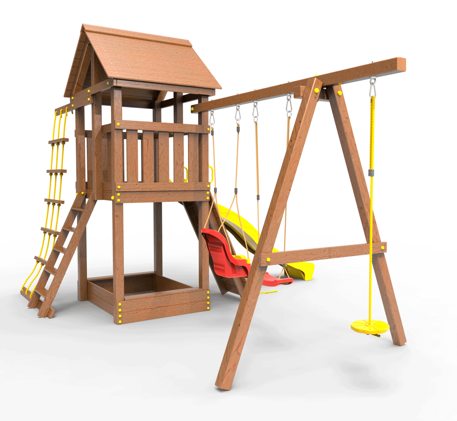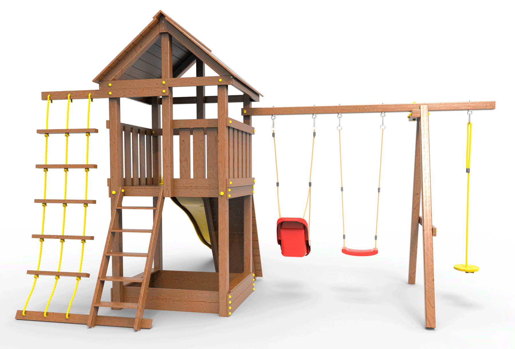 Обращаем Ваше внимание, что фактический цвет детской площадки может отличаться от представленных фото на сайте. Специфика окраски нетоксичными пропитками и красителями допускает отклонения в цветовой гамме отгружаемых изделий. Также обратите внимание, что фактический цвет может отличаться из-за цветопередачи устройства на котором Вы смотрите фото.