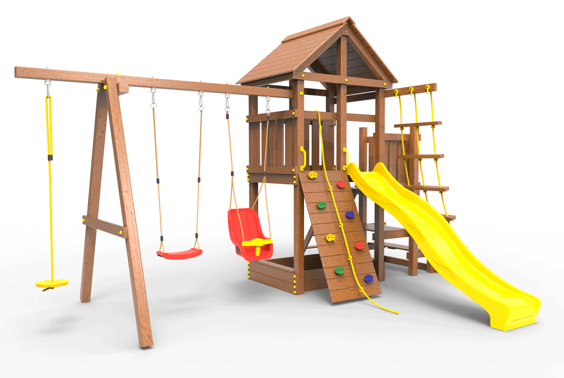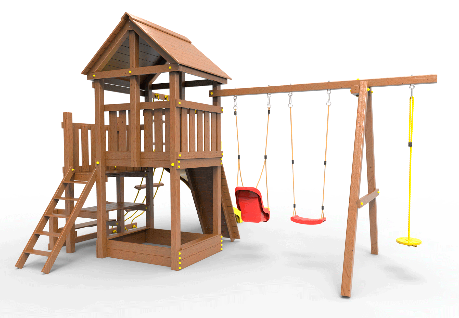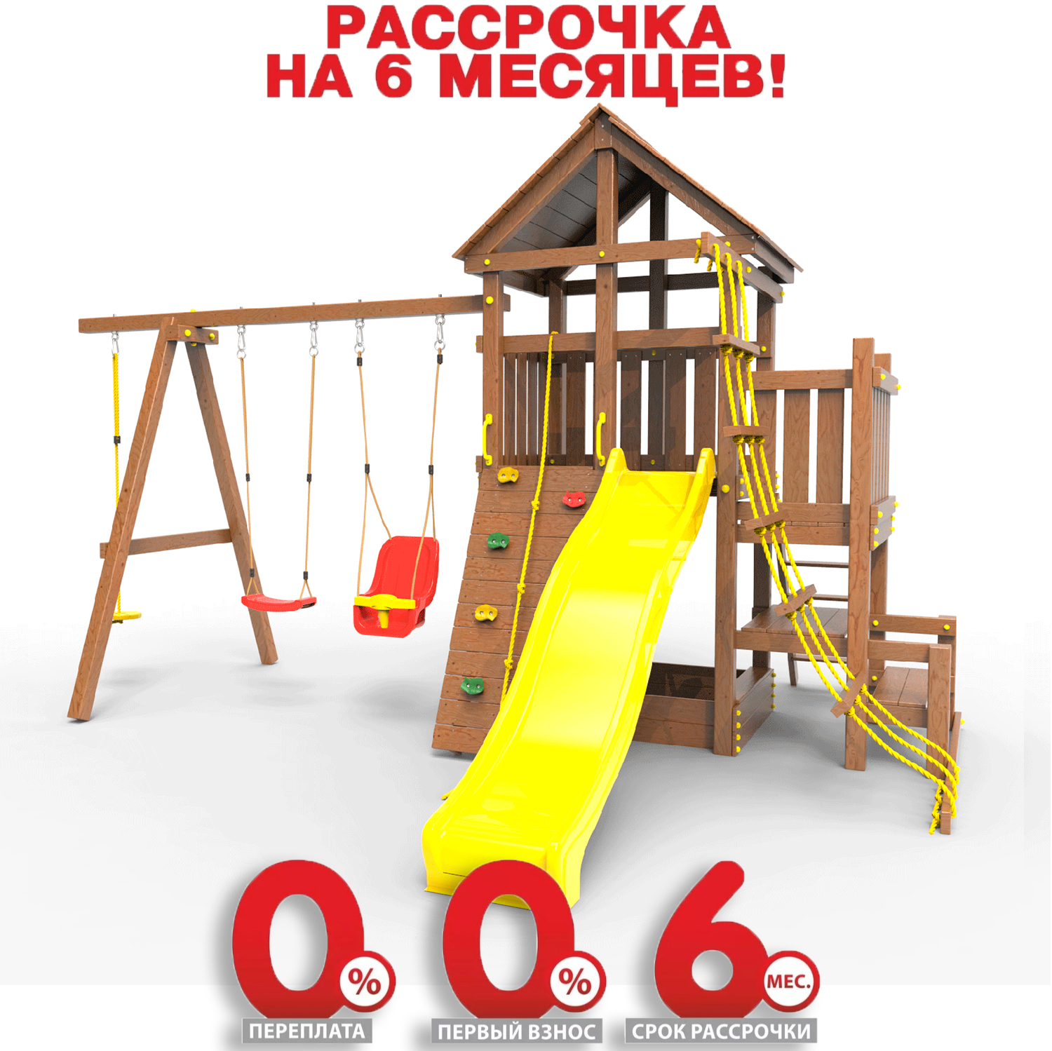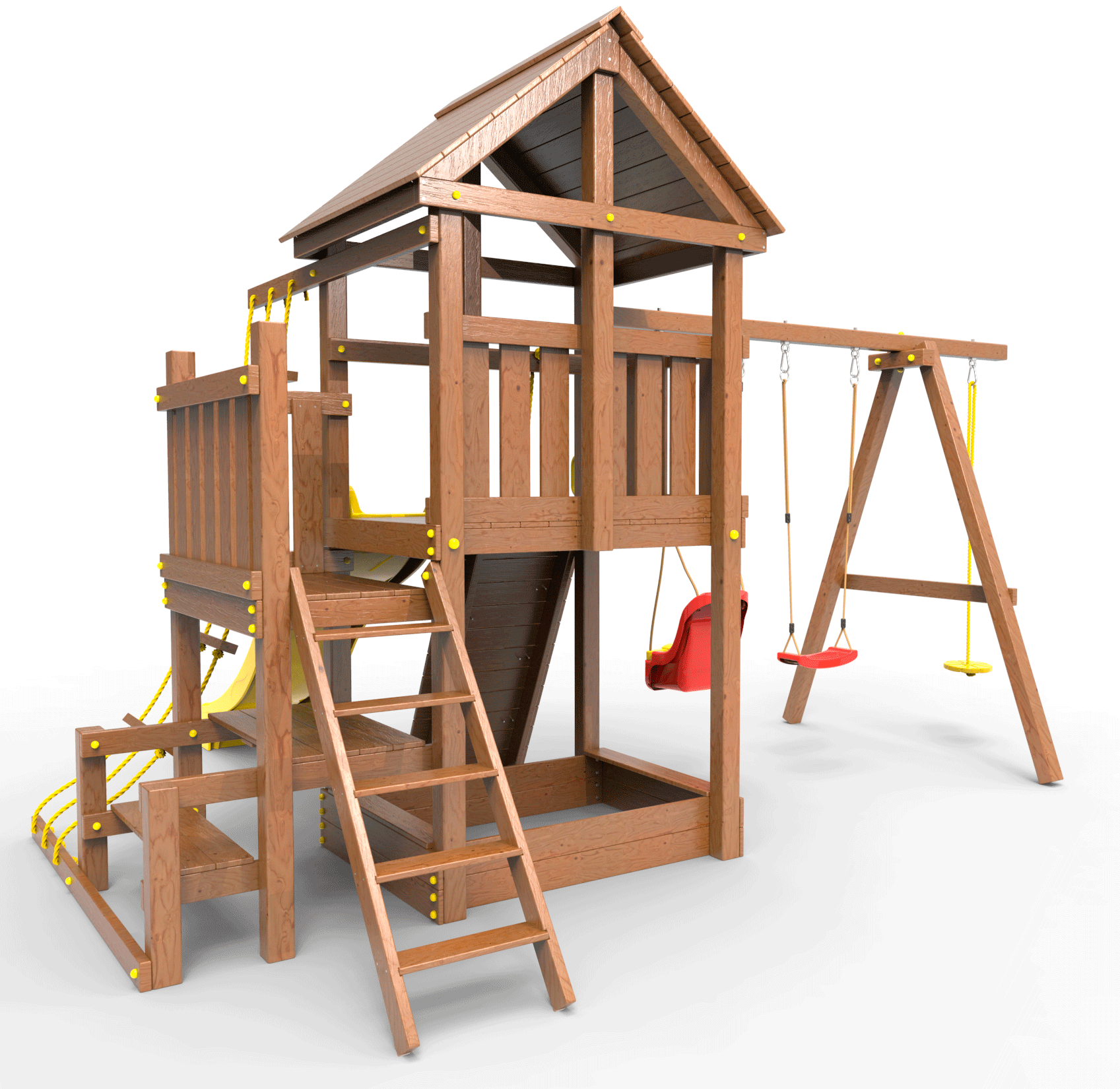 Обращаем Ваше внимание, что фактический цвет детской площадки может отличаться от представленных фото на сайте. Специфика окраски нетоксичными пропитками и красителями допускает отклонения в цветовой гамме отгружаемых изделий. Также обратите внимание, что фактический цвет может отличаться из-за цветопередачи устройства на котором Вы смотрите фото.