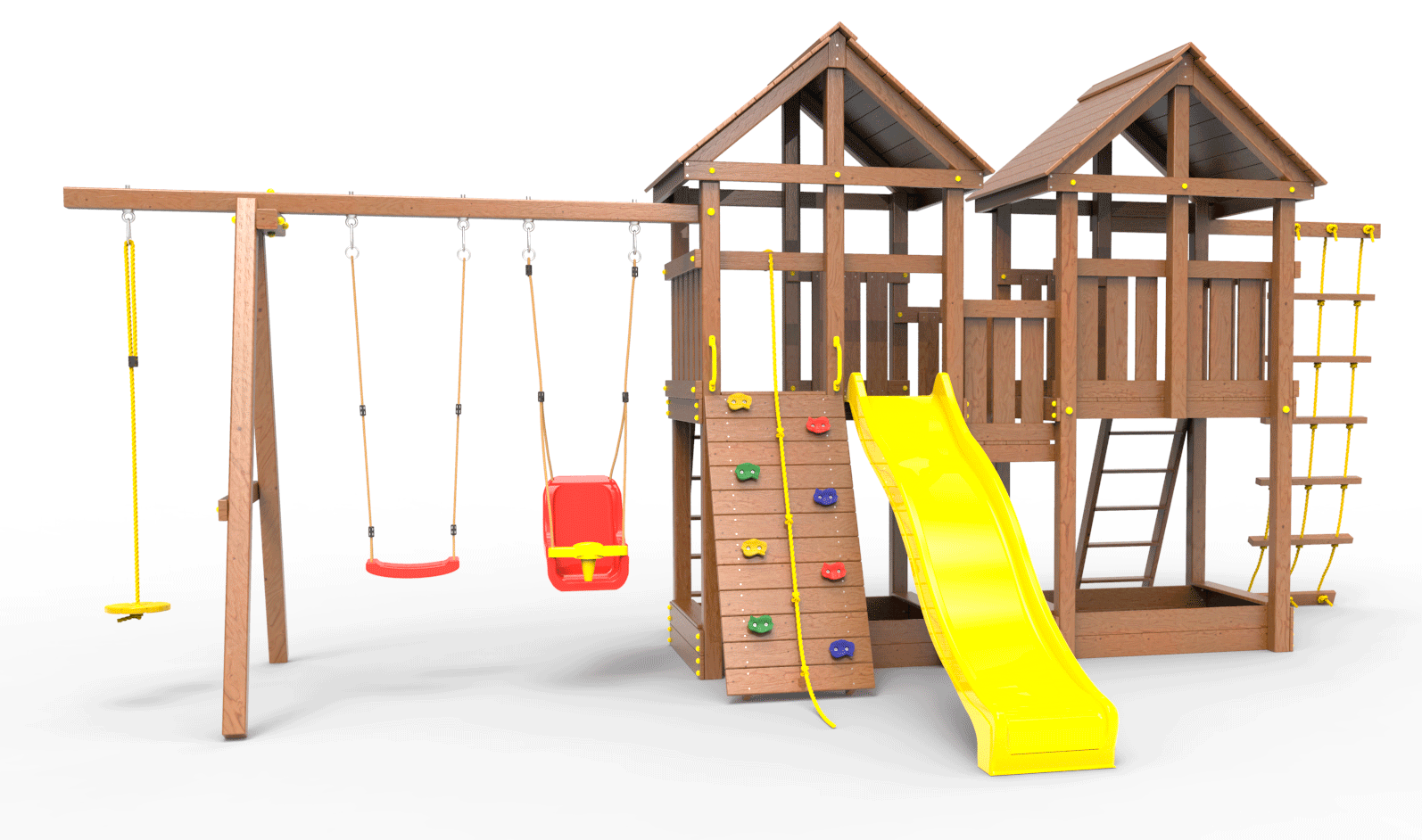 Обращаем Ваше внимание, что фактический цвет детской площадки может отличаться от представленных фото на сайте. Специфика окраски нетоксичными пропитками и красителями допускает отклонения в цветовой гамме отгружаемых изделий. Также обратите внимание, что фактический цвет может отличаться из-за цветопередачи устройства на котором Вы смотрите фото.