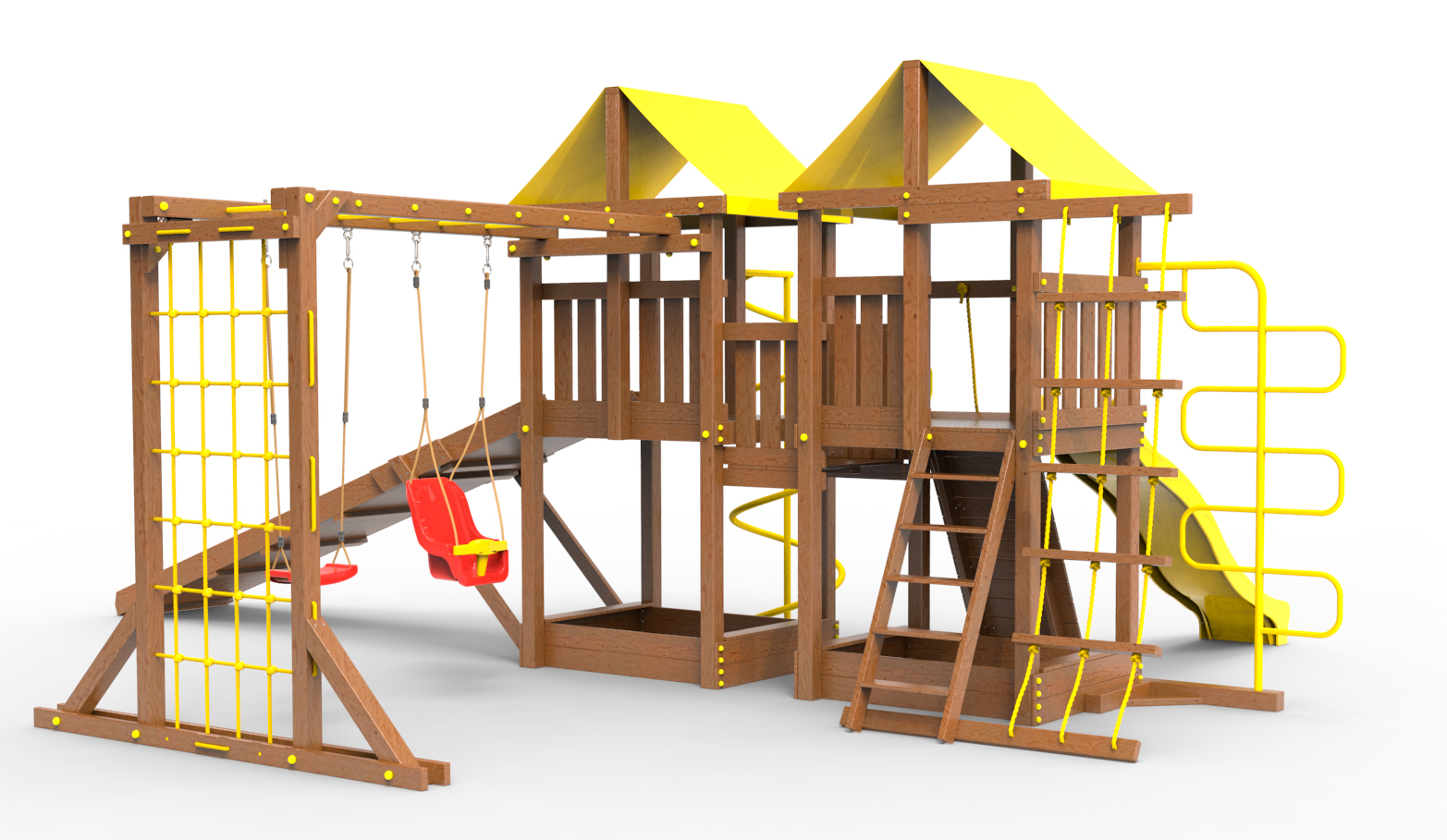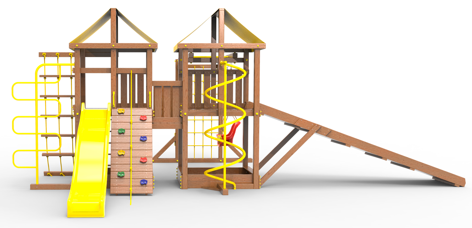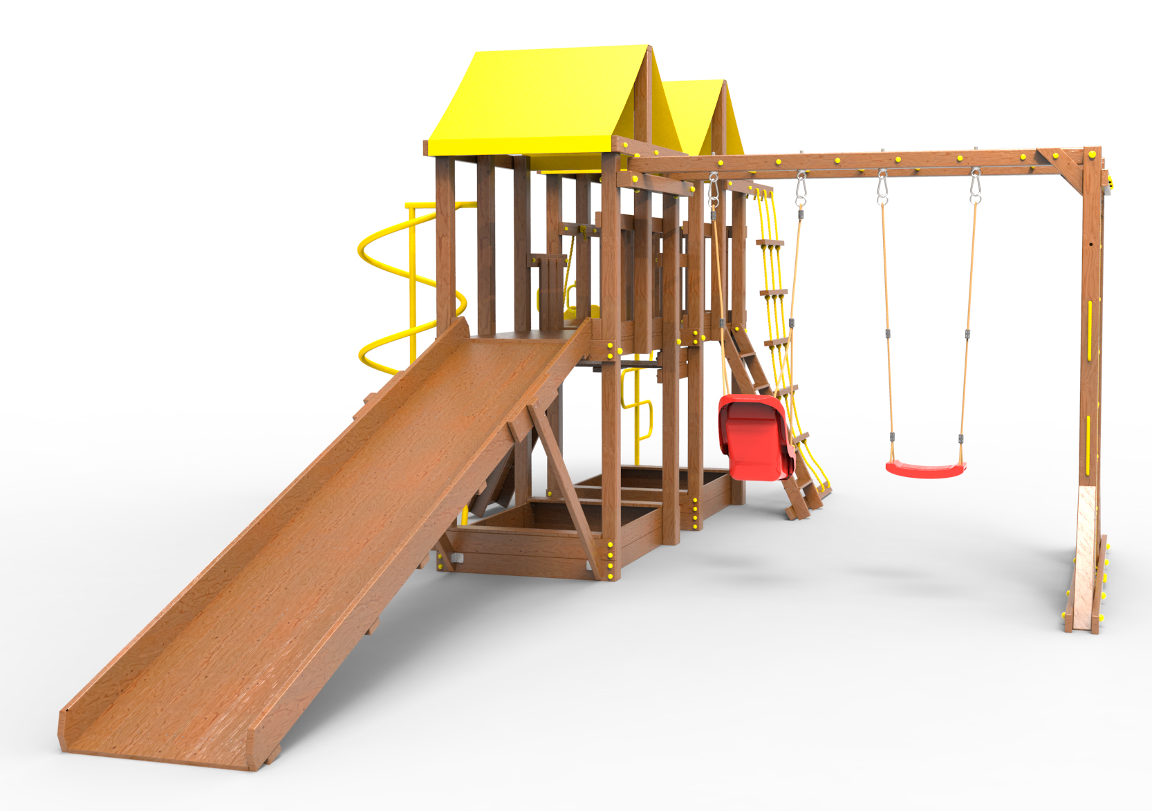 Обращаем Ваше внимание, что фактический цвет детской площадки может отличаться от представленных фото на сайте. Специфика окраски нетоксичными пропитками и красителями допускает отклонения в цветовой гамме отгружаемых изделий. Также обратите внимание, что фактический цвет может отличаться из-за цветопередачи устройства на котором Вы смотрите фото.