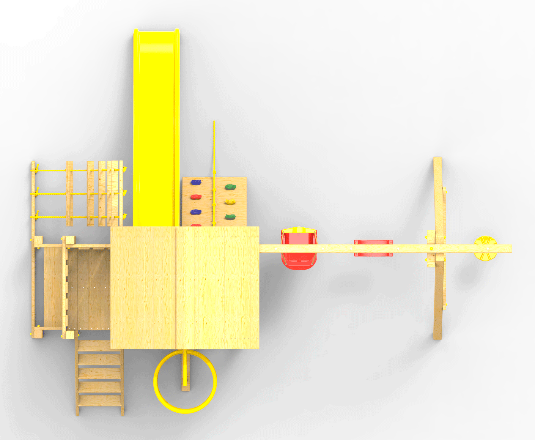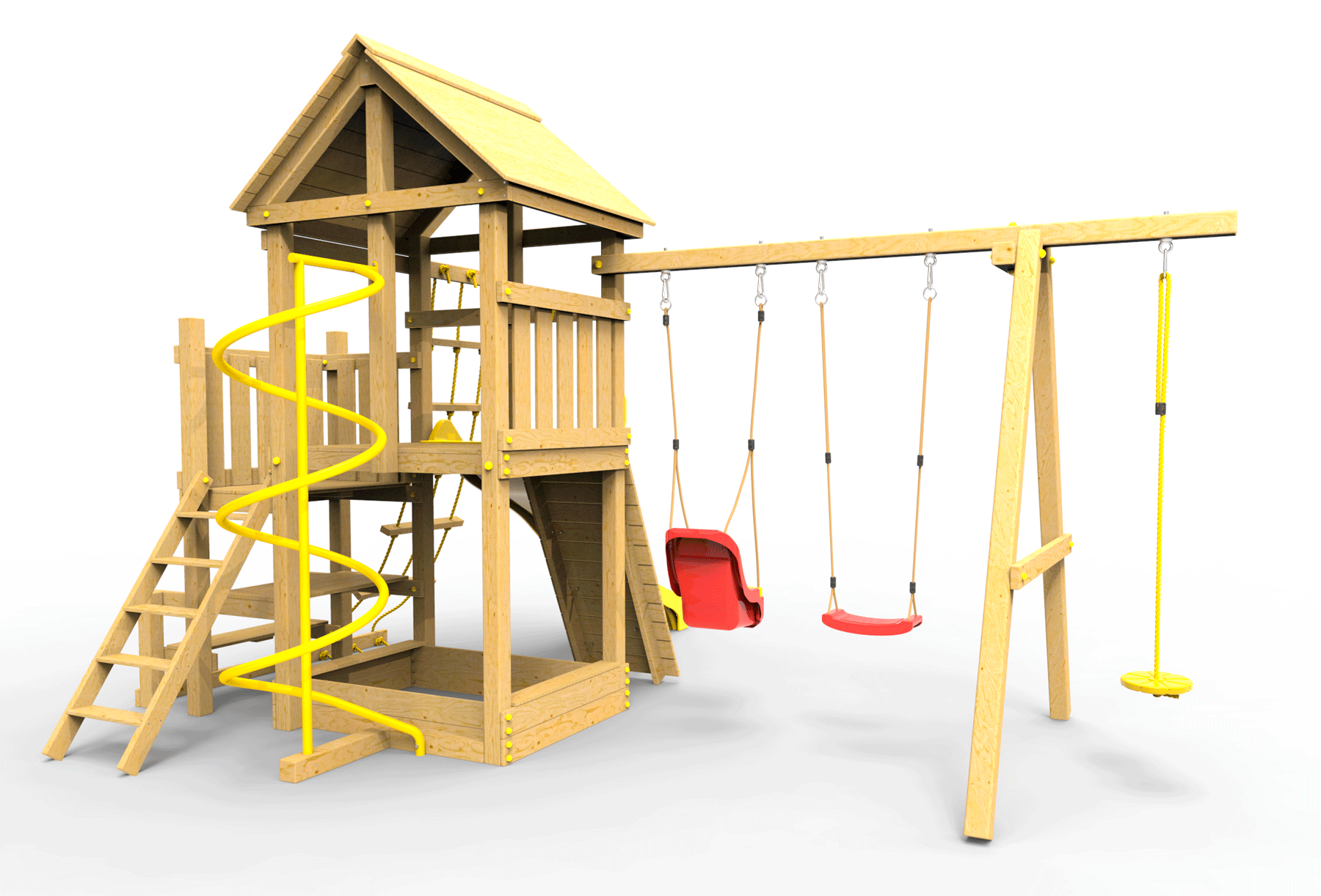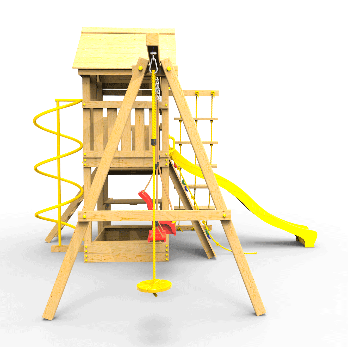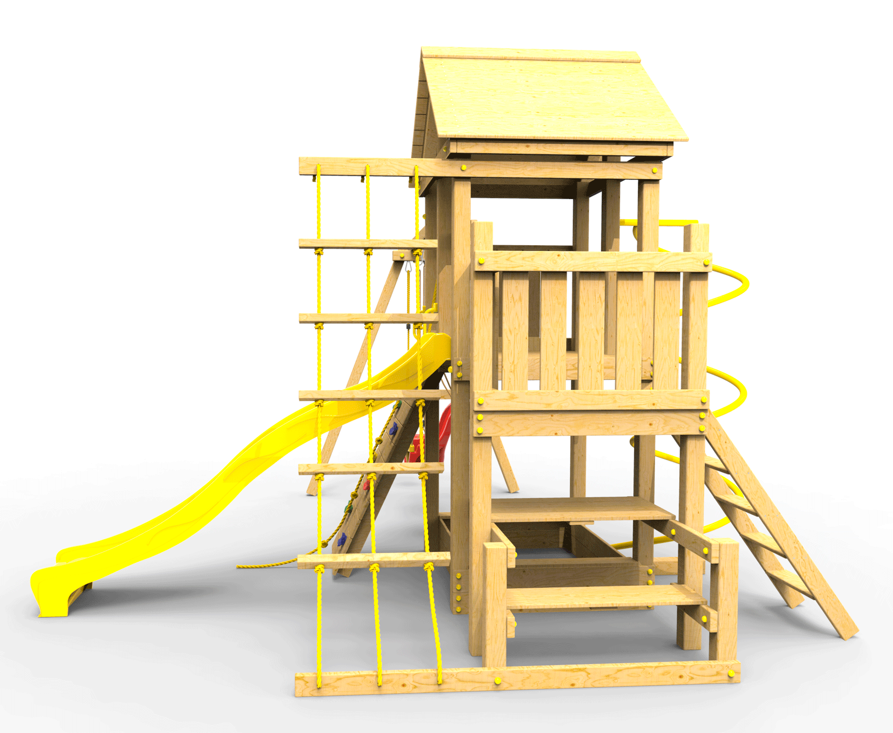 ● деревянная крыша                                                         ● трап 2м с канатом                                                  ● поручни для лестницы                                                                              ● диван на цепях двухместный                                         ● столик в песочницу