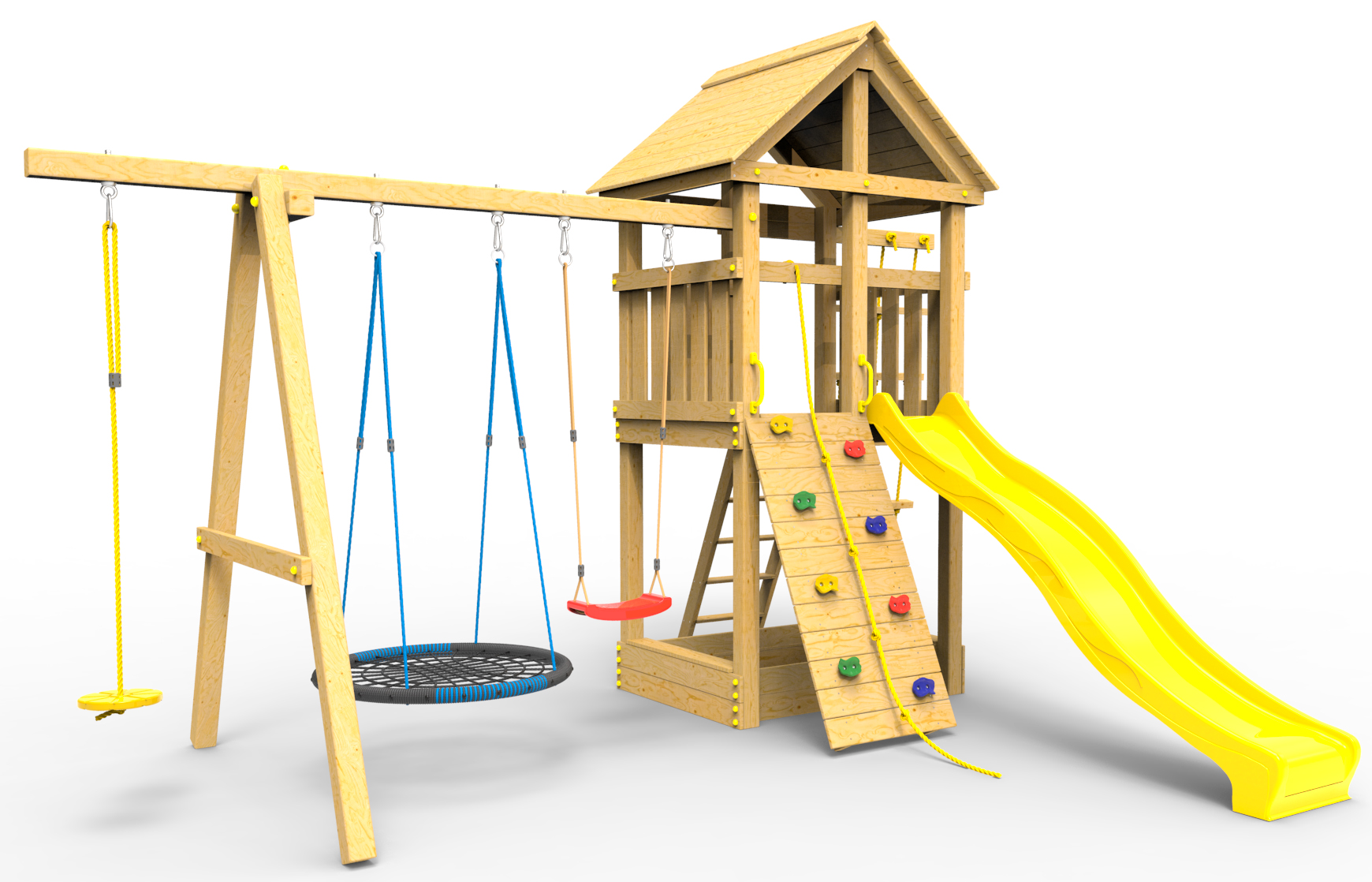 Обращаем Ваше внимание, что фактический цвет детской площадки может отличаться от представленных фото на сайте. Специфика окраски нетоксичными пропитками и красителями допускает отклонения в цветовой гамме отгружаемых изделий. Также обратите внимание, что фактический цвет может отличаться из-за цветопередачи устройства на котором Вы смотрите фото.