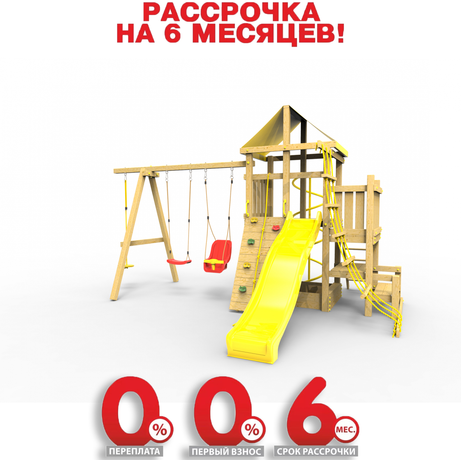 Обращаем Ваше внимание, что фактический цвет детской площадки может отличаться от представленных фото на сайте. Специфика окраски нетоксичными пропитками и красителями допускает отклонения в цветовой гамме отгружаемых изделий. Также обратите внимание, что фактический цвет может отличаться из-за цветопередачи устройства на котором Вы смотрите фото.