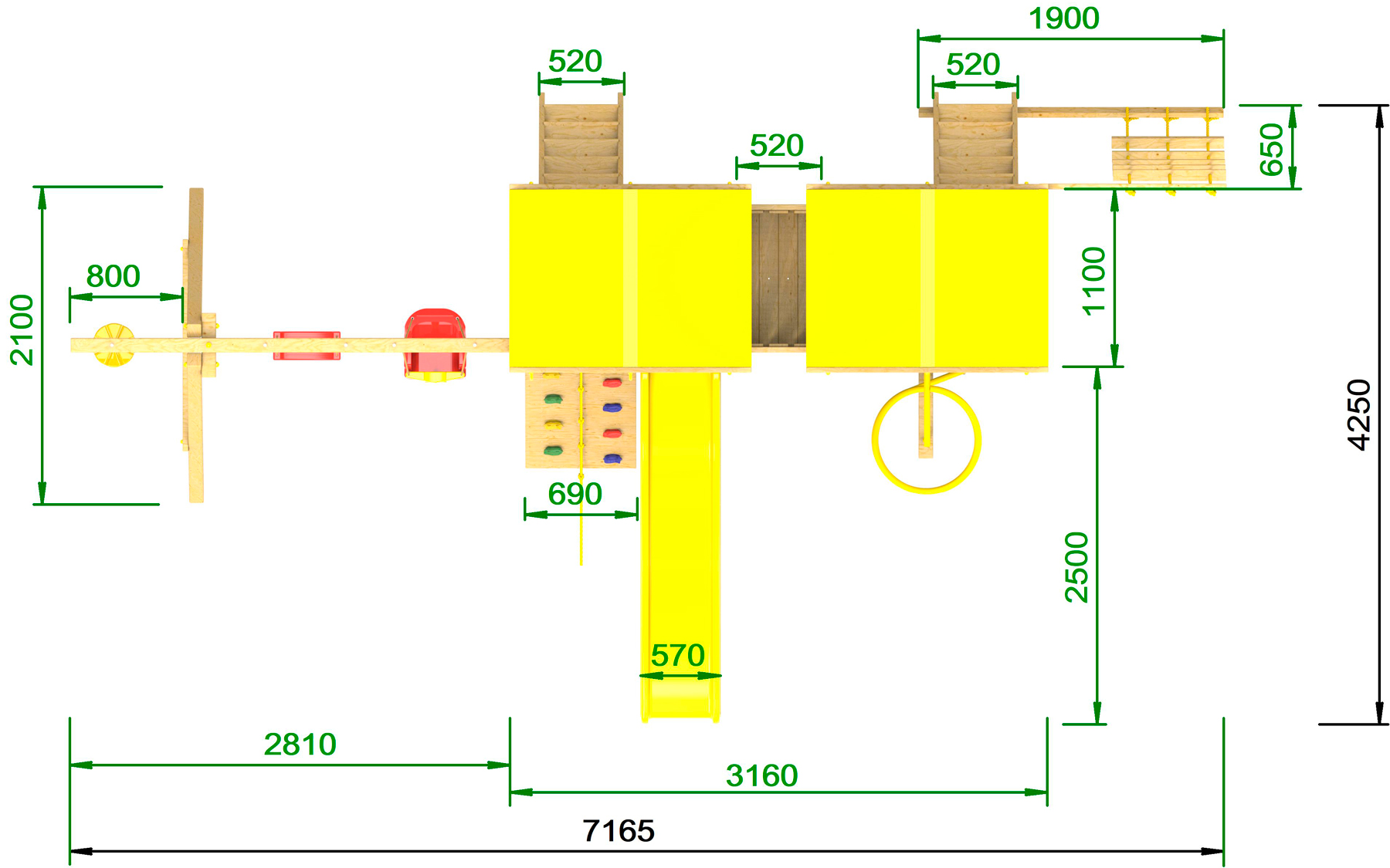 Обращаем Ваше внимание, что фактический цвет детской площадки может отличаться от представленных фото на сайте. Специфика окраски нетоксичными пропитками и красителями допускает отклонения в цветовой гамме отгружаемых изделий. Также обратите внимание, что фактический цвет может отличаться из-за цветопередачи устройства на котором Вы смотрите фото.
