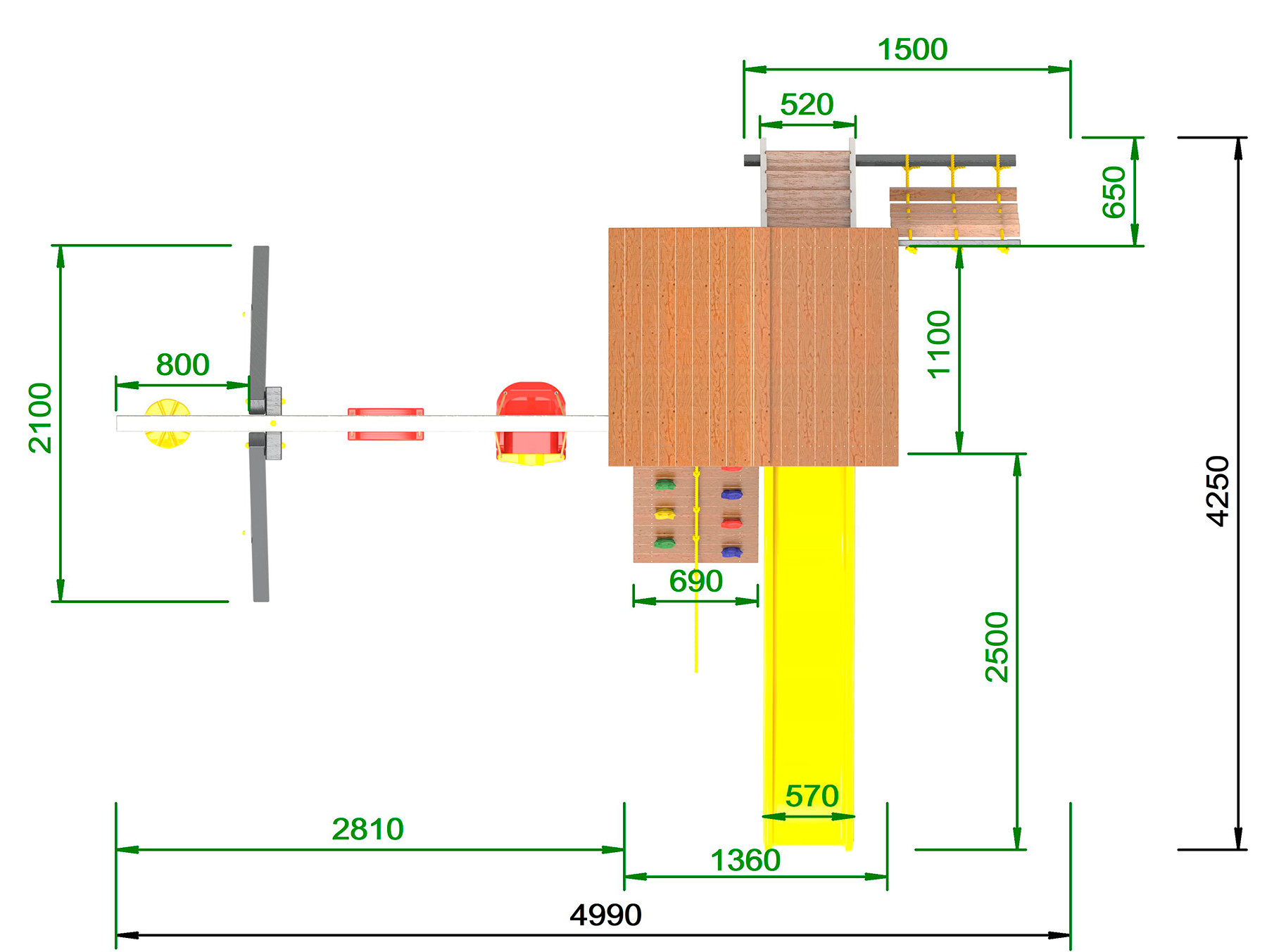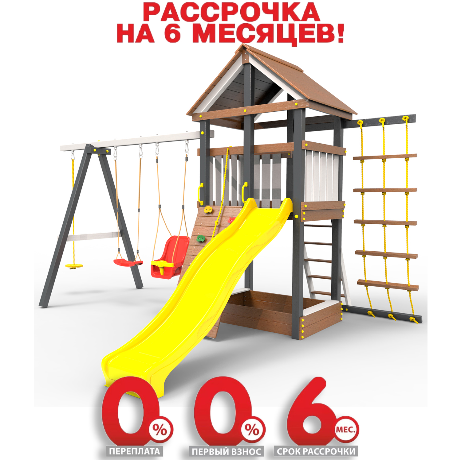 Обращаем Ваше внимание, что фактический цвет детской площадки может отличаться от представленных фото на сайте. Специфика окраски нетоксичными пропитками и красителями допускает отклонения в цветовой гамме отгружаемых изделий. Также обратите внимание, что фактический цвет может отличаться из-за цветопередачи устройства на котором Вы смотрите фото.
