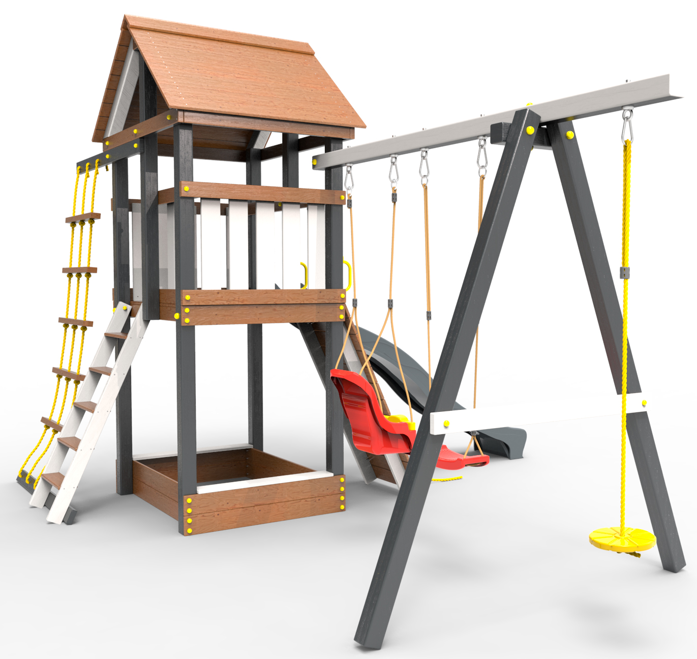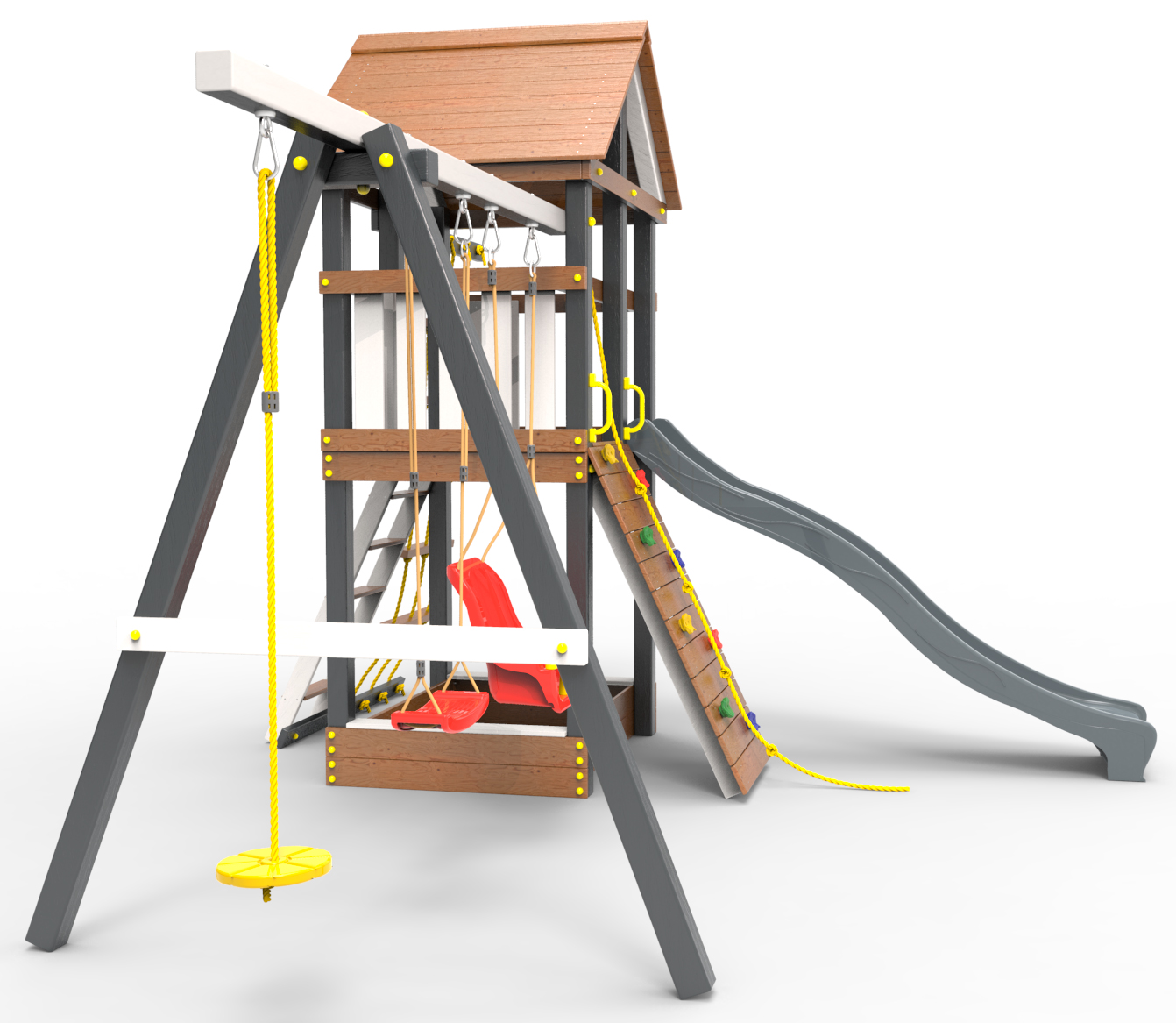Обращаем Ваше внимание, что фактический цвет детской площадки может отличаться от представленных фото на сайте. Специфика окраски нетоксичными пропитками и красителями допускает отклонения в цветовой гамме отгружаемых изделий. Также обратите внимание, что фактический цвет может отличаться из-за цветопередачи устройства на котором Вы смотрите фото.