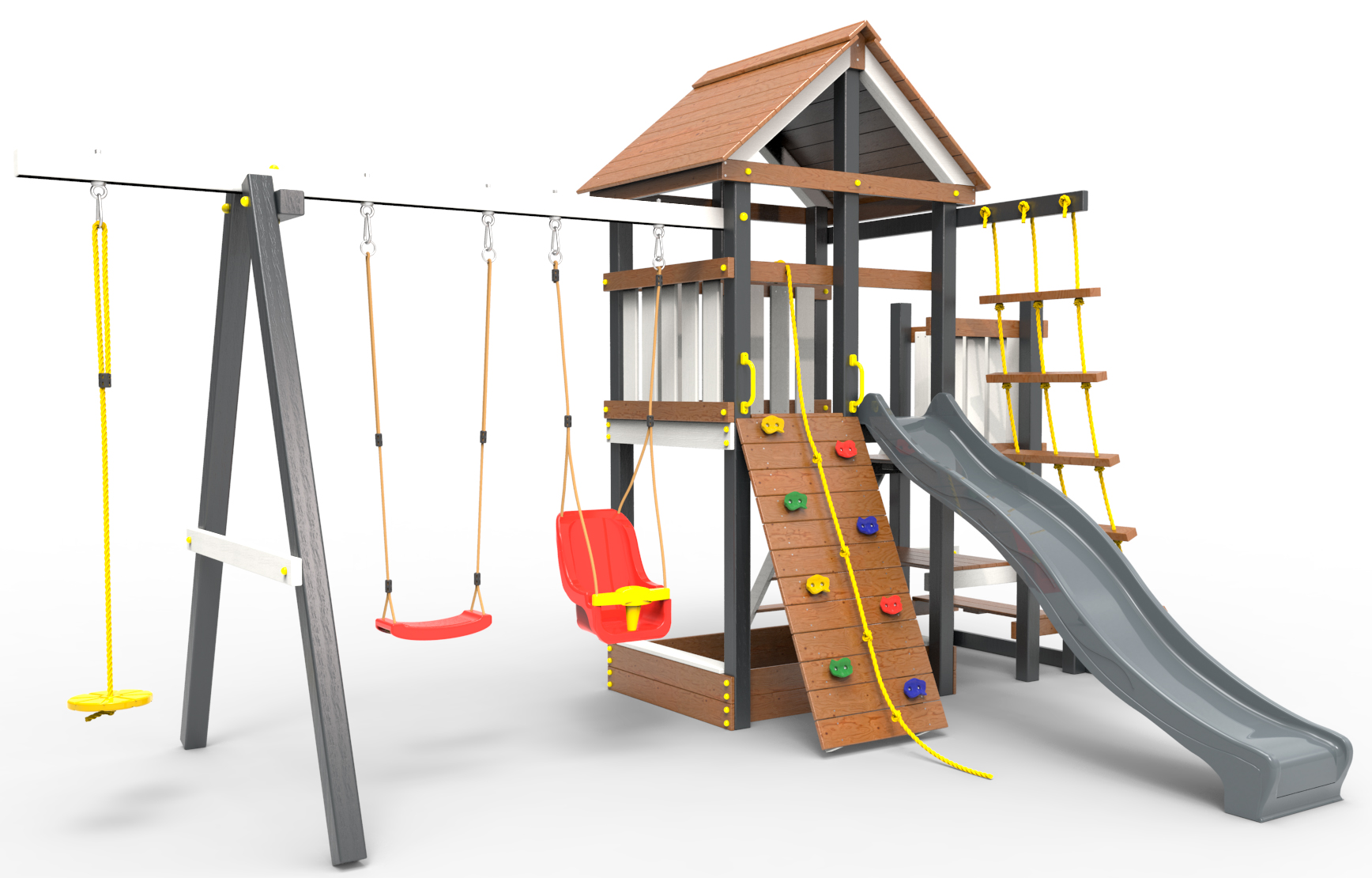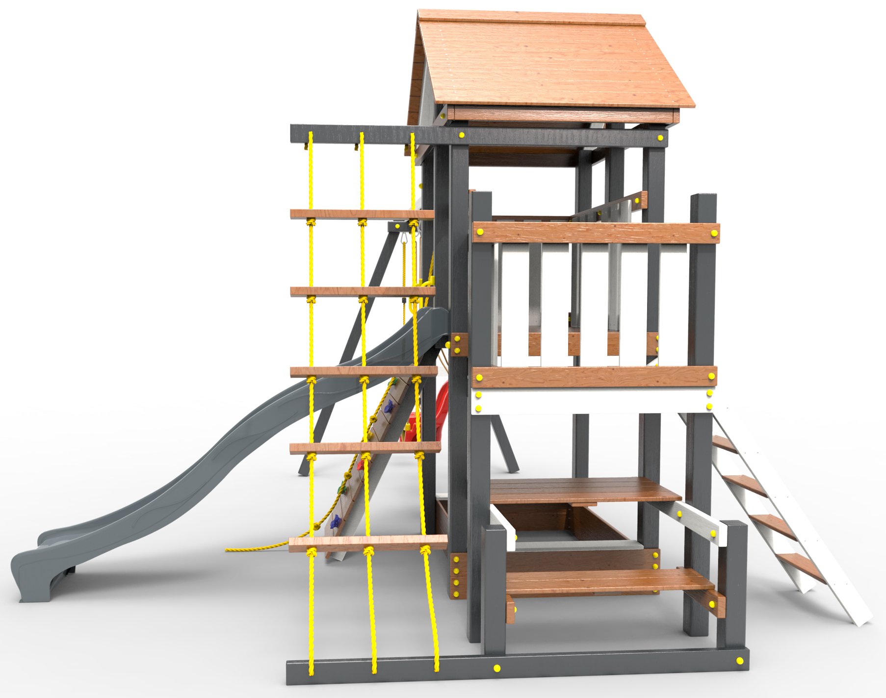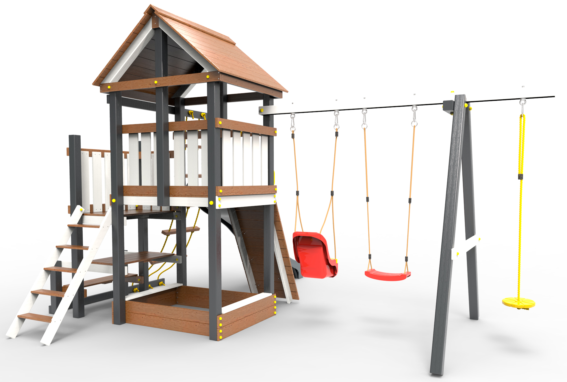 ● трап 2м с канатом                                                  ● поручни для лестницы                                                                              ● диван на цепях двухместный                                         ● столик в песочницу