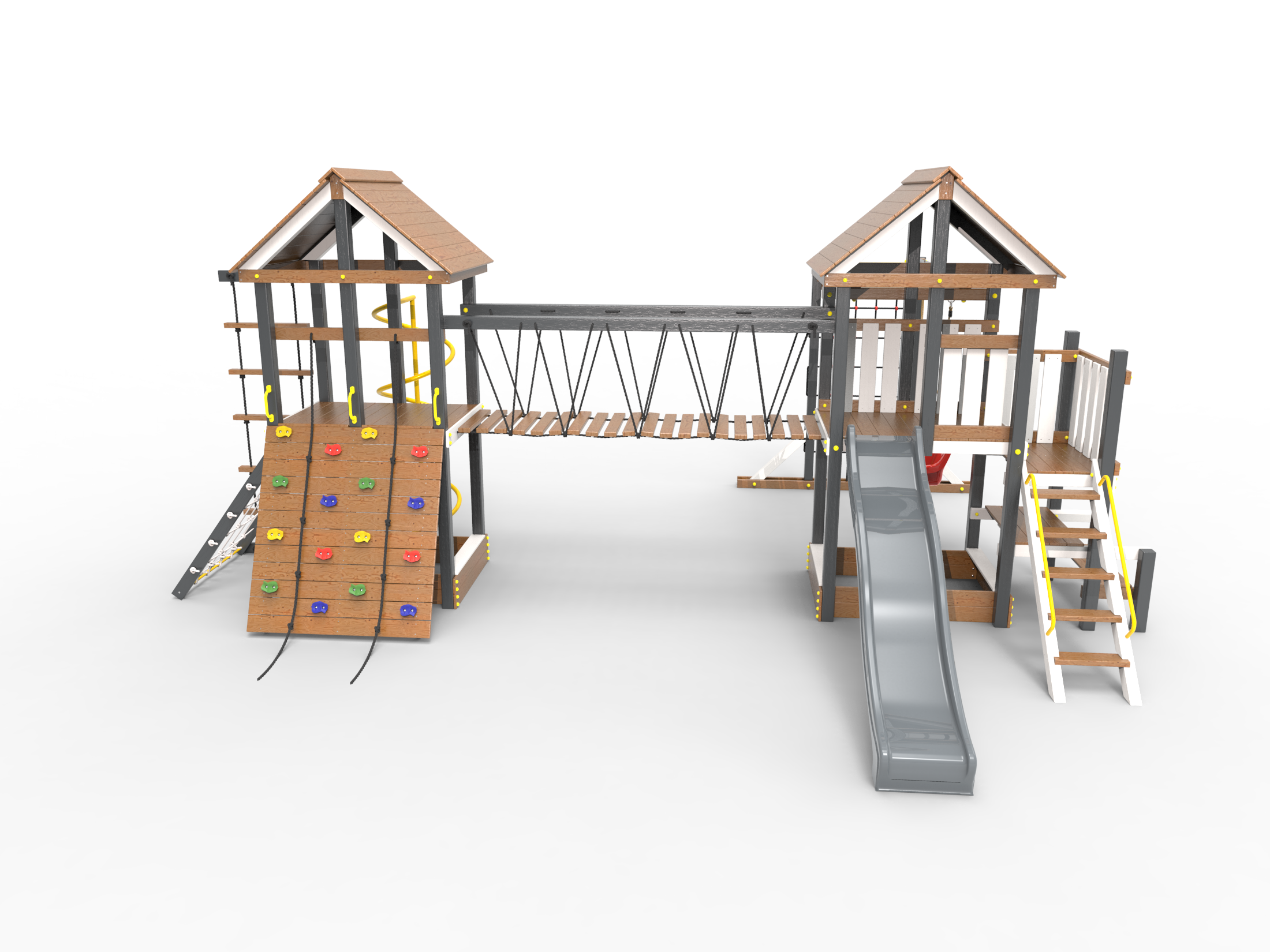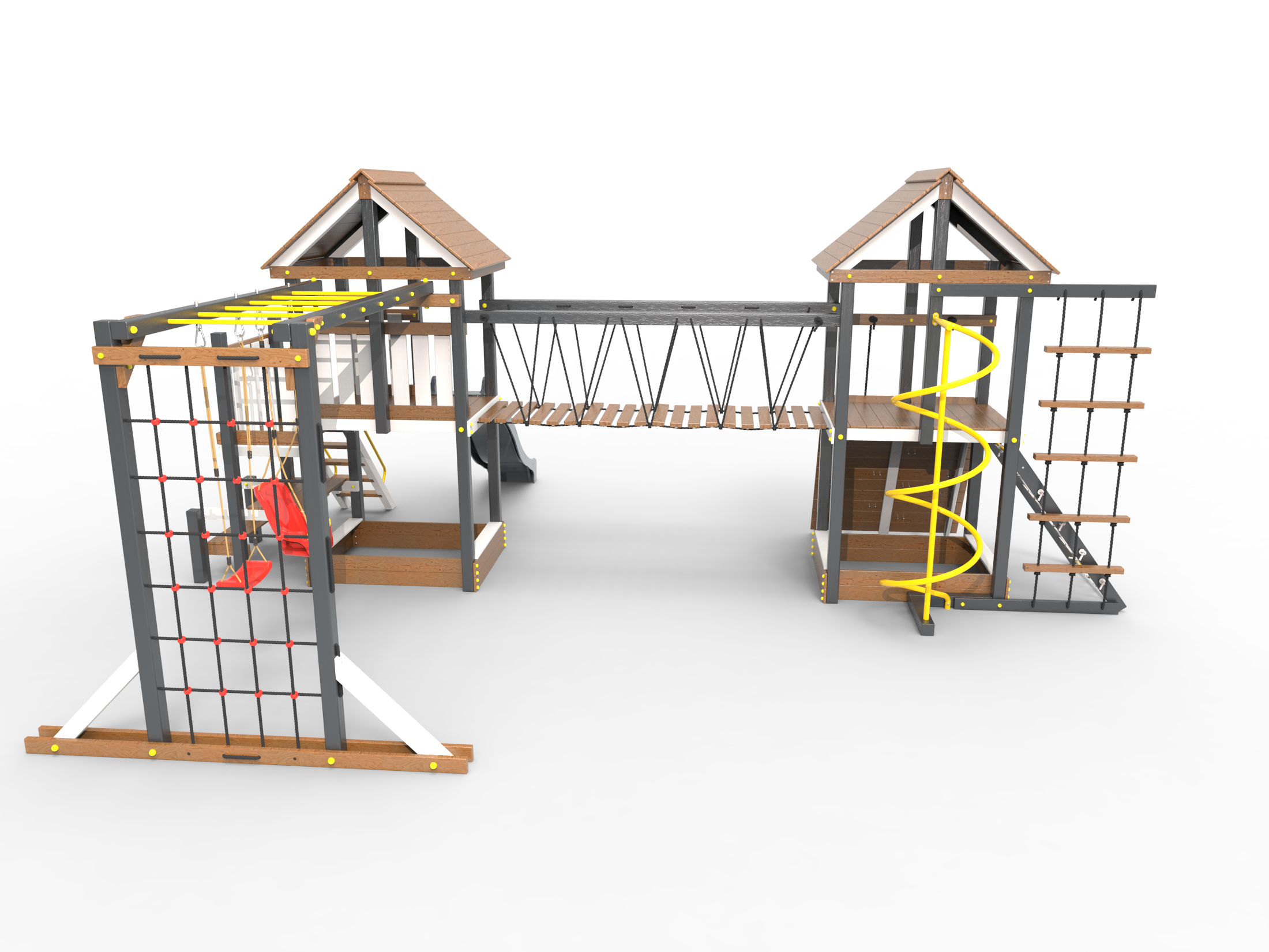 Обращаем Ваше внимание, что фактический цвет детской площадки может отличаться от представленных фото на сайте. Специфика окраски нетоксичными пропитками и красителями допускает отклонения в цветовой гамме отгружаемых изделий. Также обратите внимание, что фактический цвет может отличаться из-за цветопередачи устройства на котором Вы смотрите фото. Производитель оставляет за собой право менять цвет отдельных деталей и комплектующих(включая пластик, канаты и пр.), при этом сохраняя весь функционал и характеристики товара.