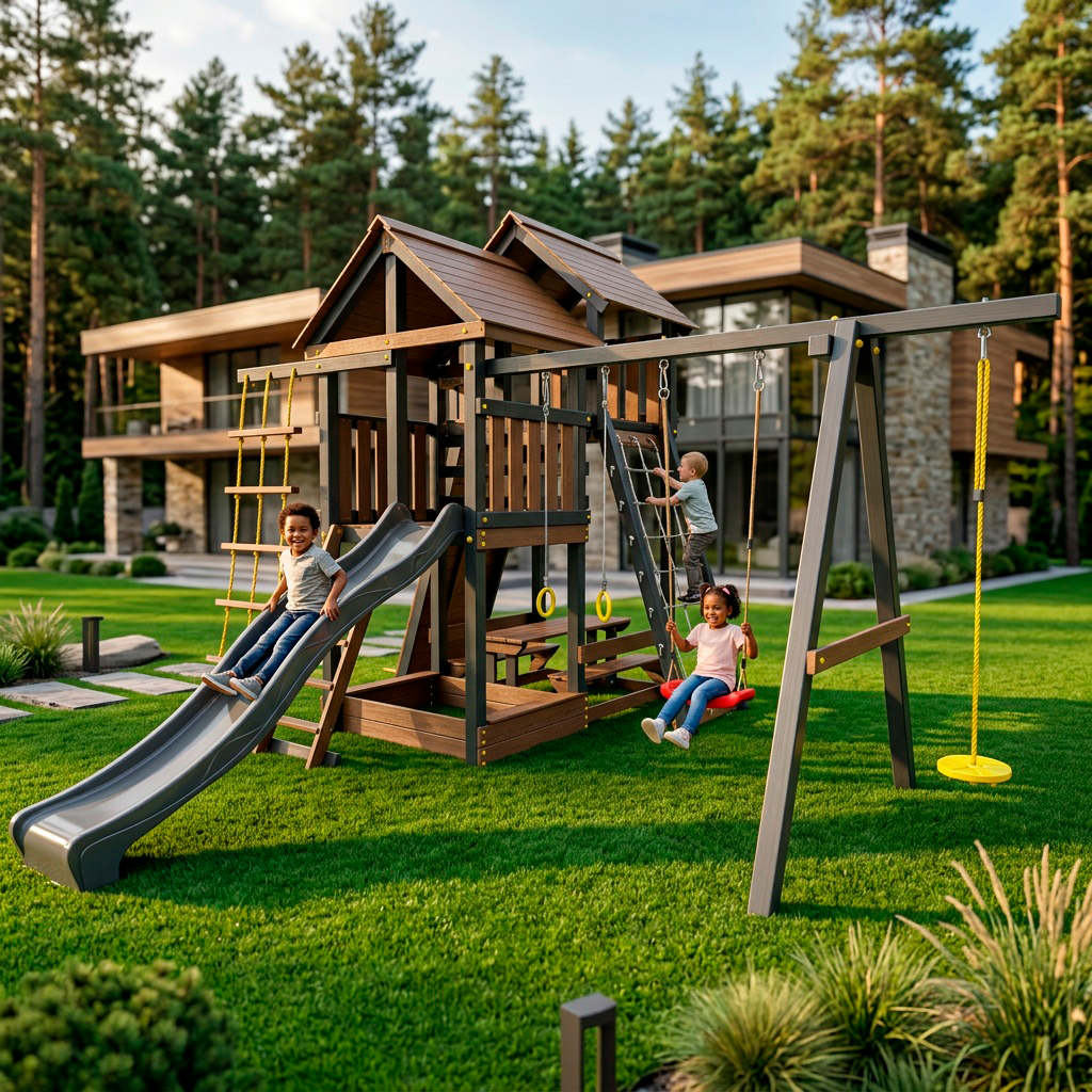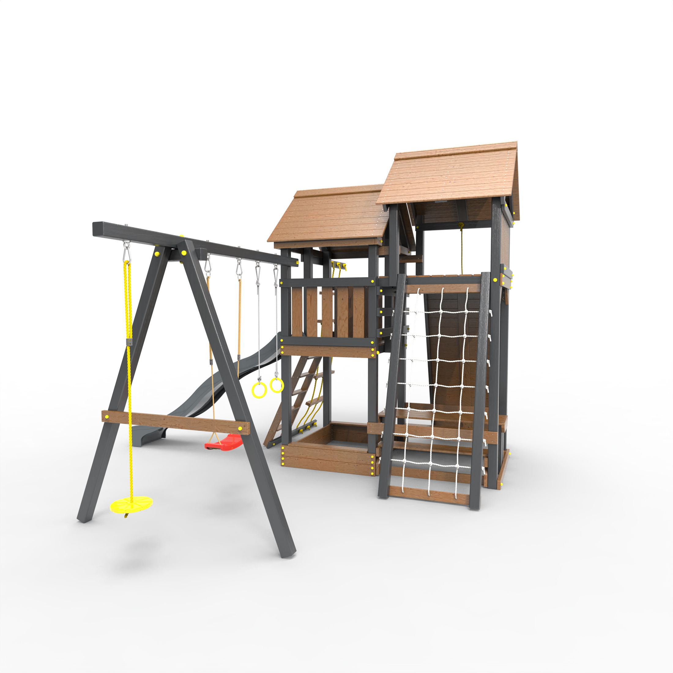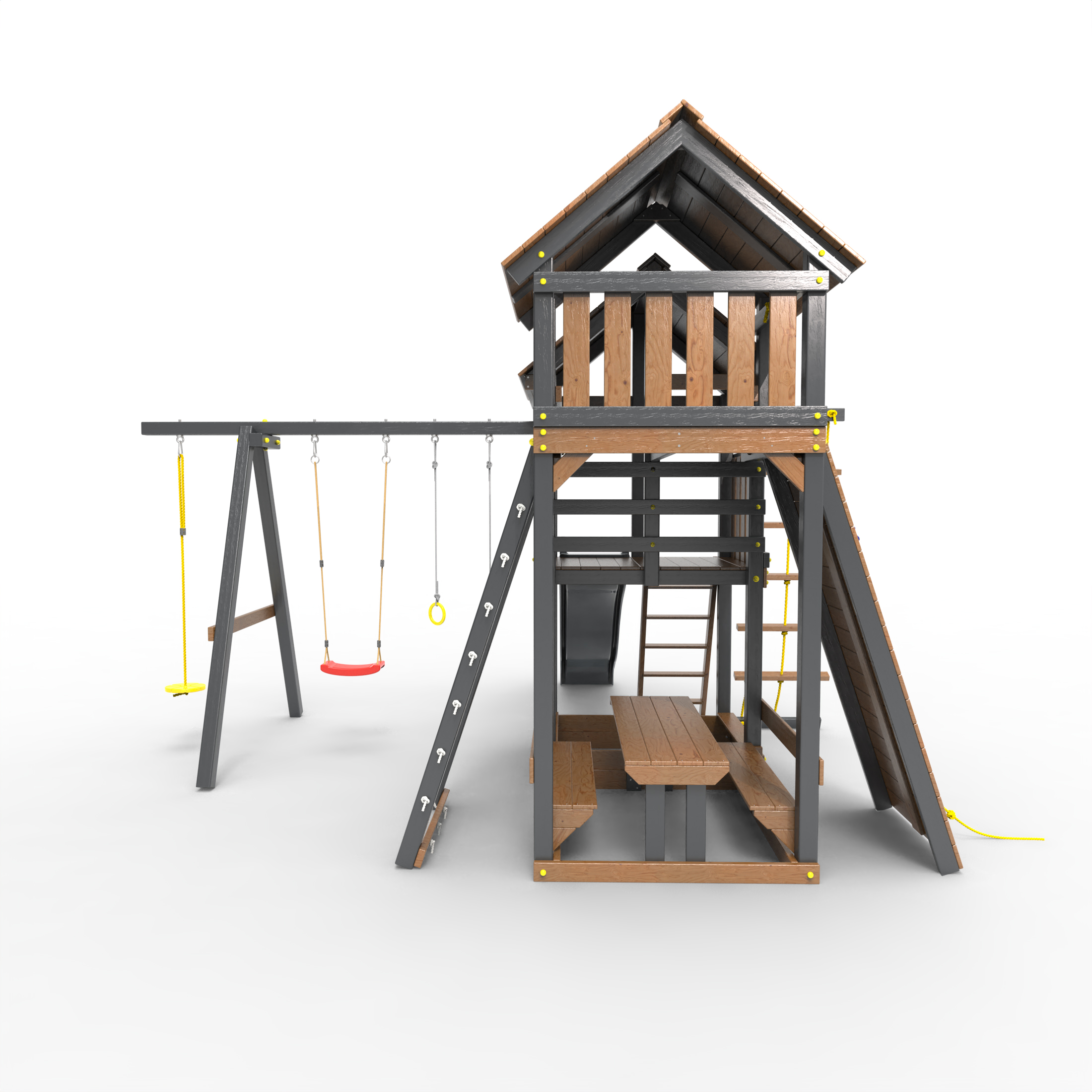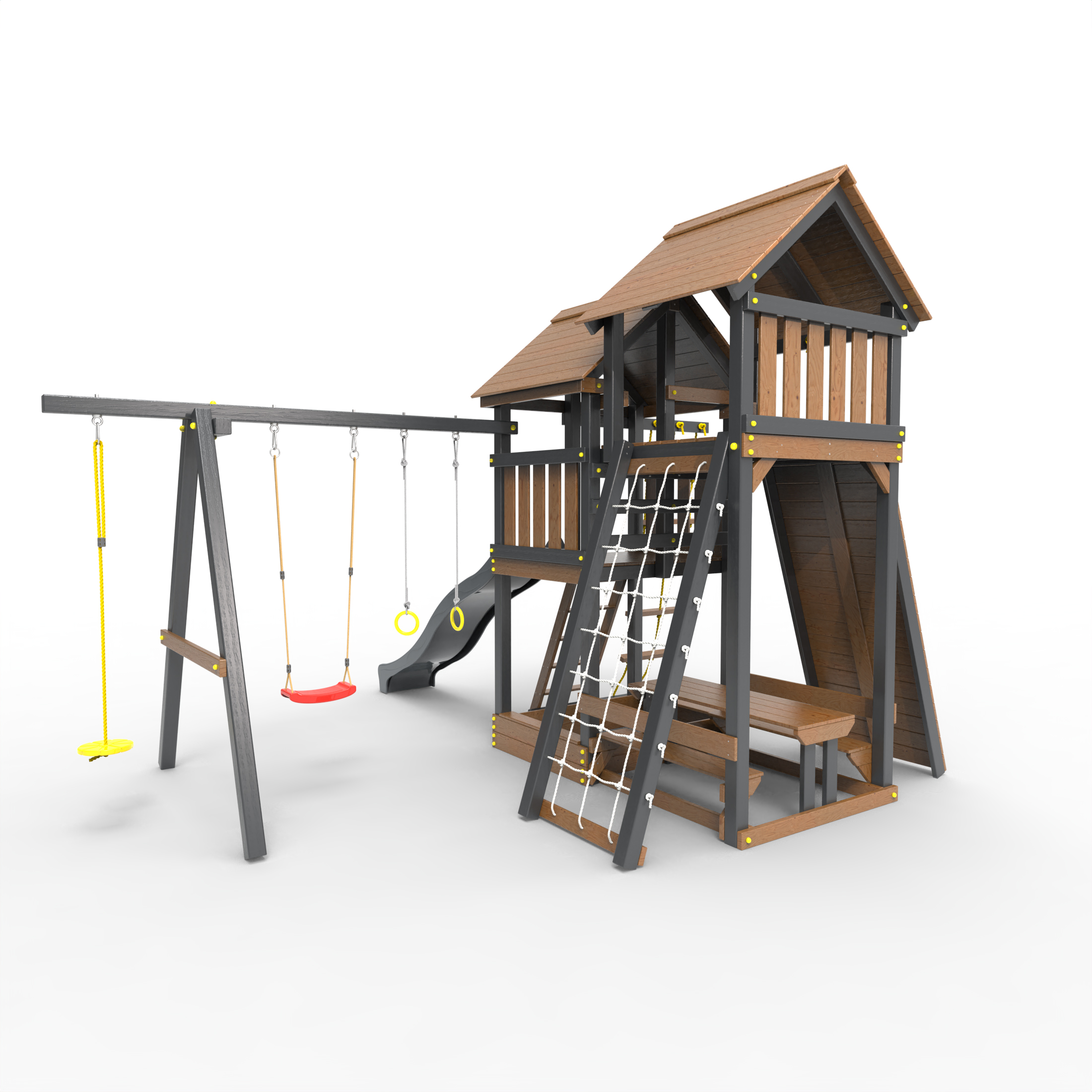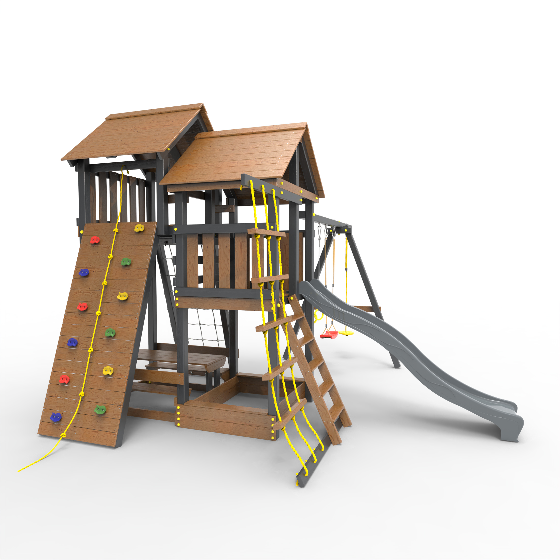 Обращаем Ваше внимание, что фактический цвет детской площадки может отличаться от представленных фото на сайте. Специфика окраски нетоксичными пропитками и красителями допускает отклонения в цветовой гамме отгружаемых изделий. Также обратите внимание, что фактический цвет может отличаться из-за цветопередачи устройства на котором Вы смотрите фото.