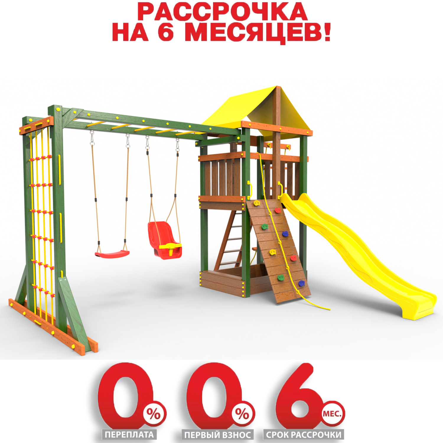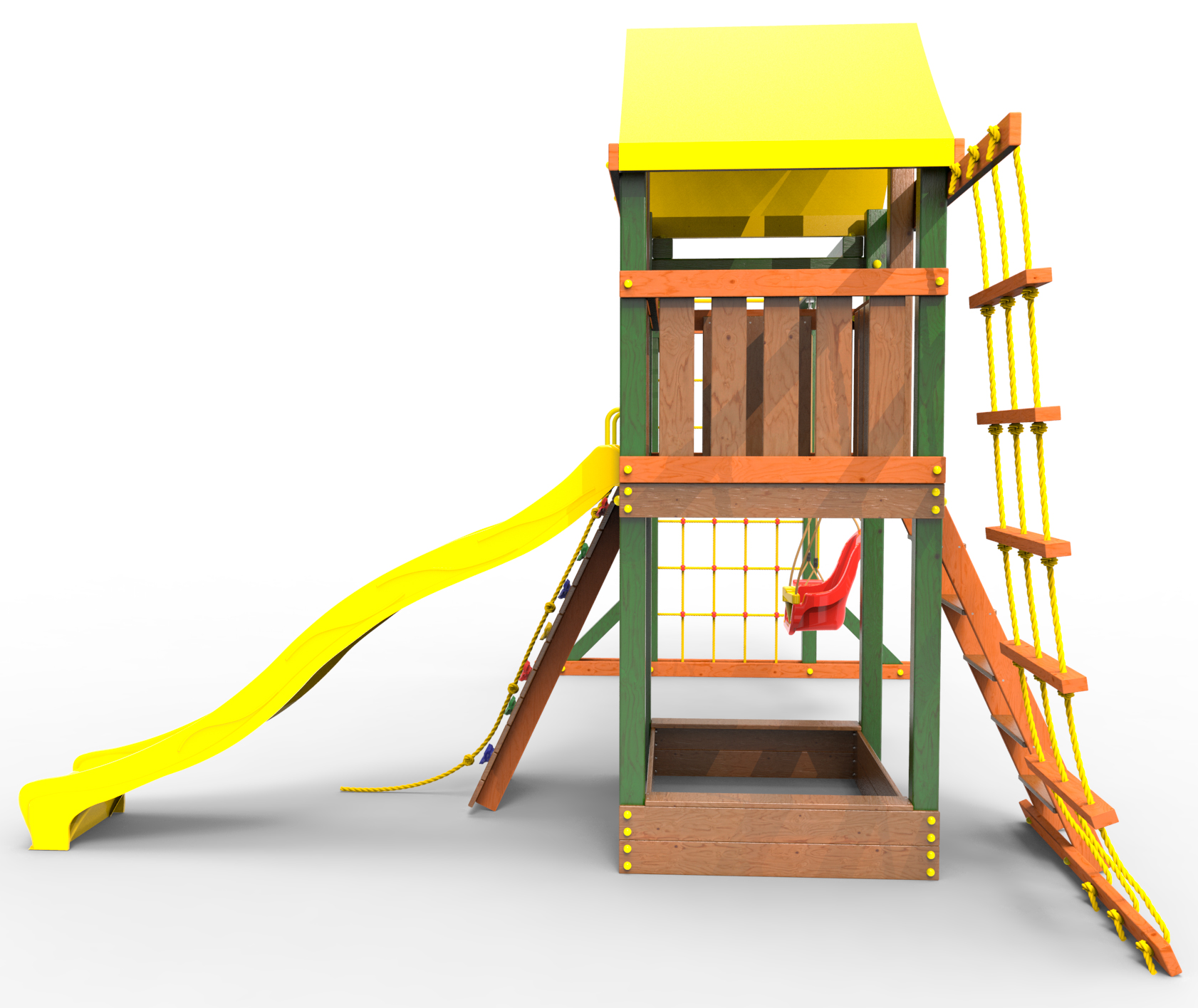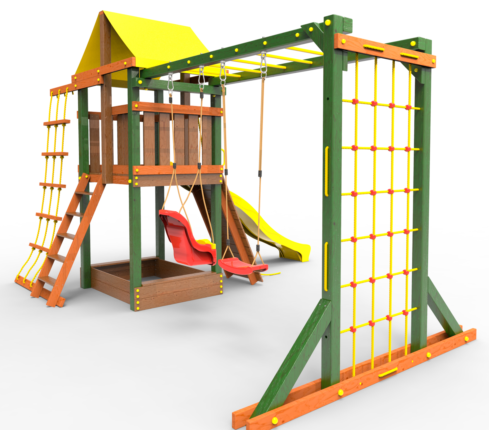 Обращаем Ваше внимание, что фактический цвет детской площадки может отличаться от представленных фото на сайте. Специфика окраски нетоксичными пропитками и красителями допускает отклонения в цветовой гамме отгружаемых изделий. Также обратите внимание, что фактический цвет может отличаться из-за цветопередачи устройства на котором Вы смотрите фото. Производитель оставляет за собой право менять цвет отдельных деталей и комплектующих(включая пластик, канаты и пр.), при этом сохраняя весь функционал и характеристики товара.