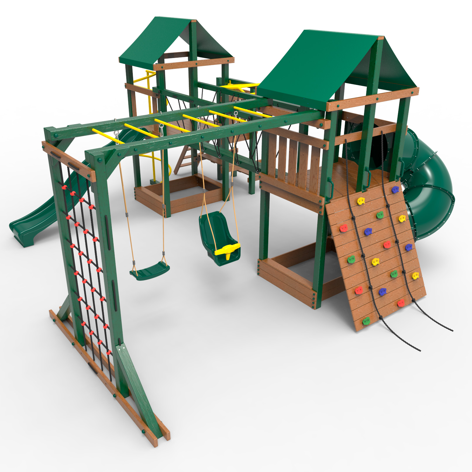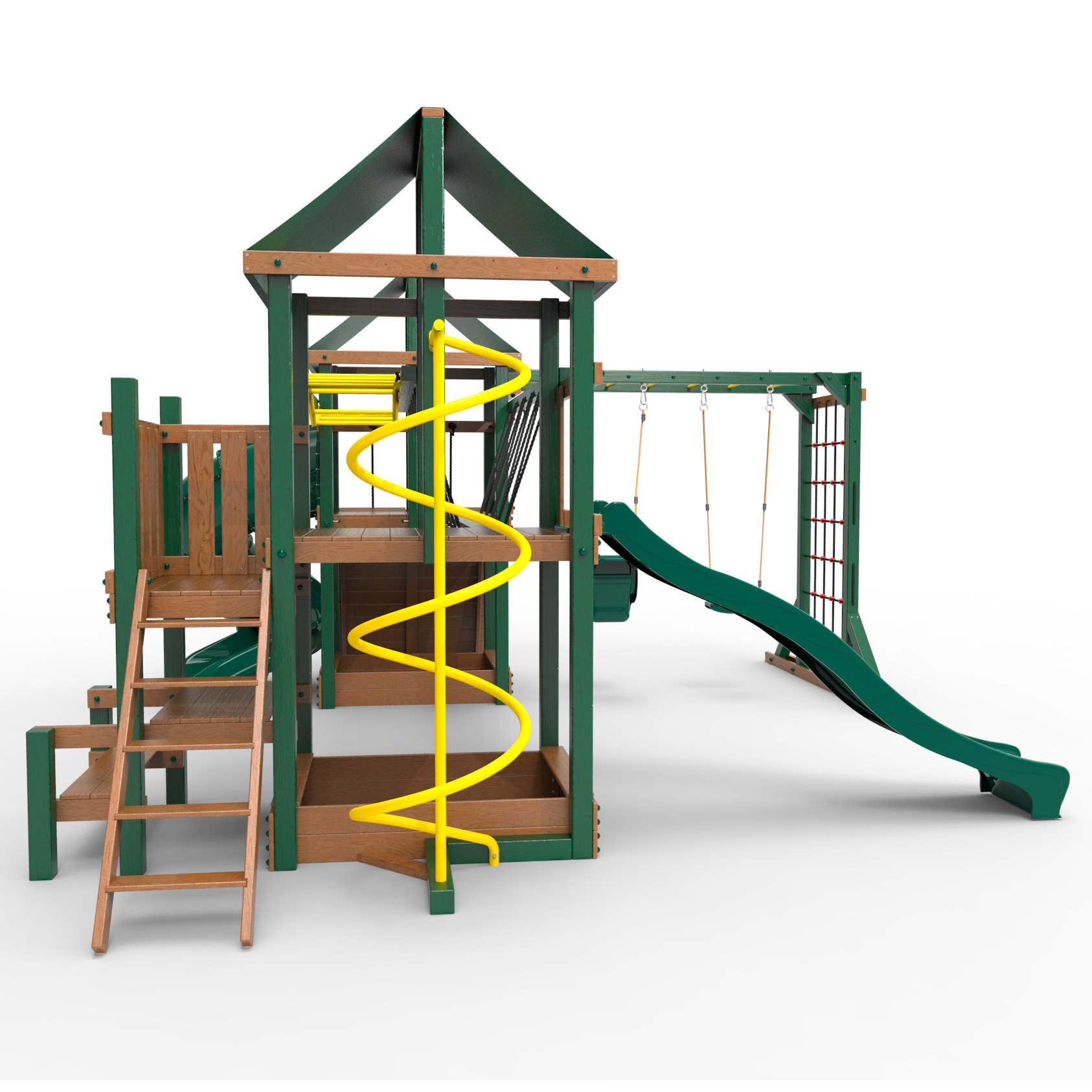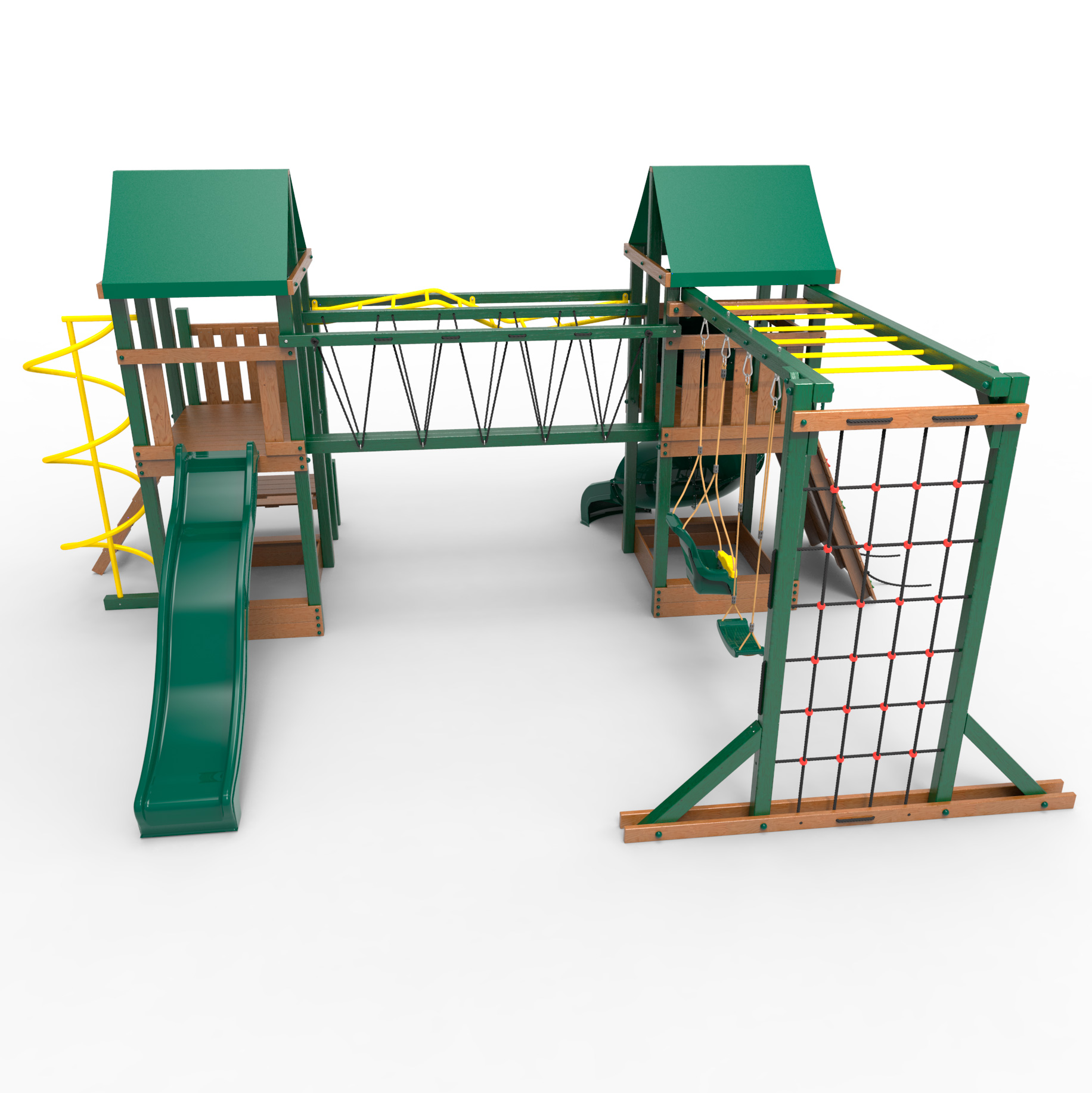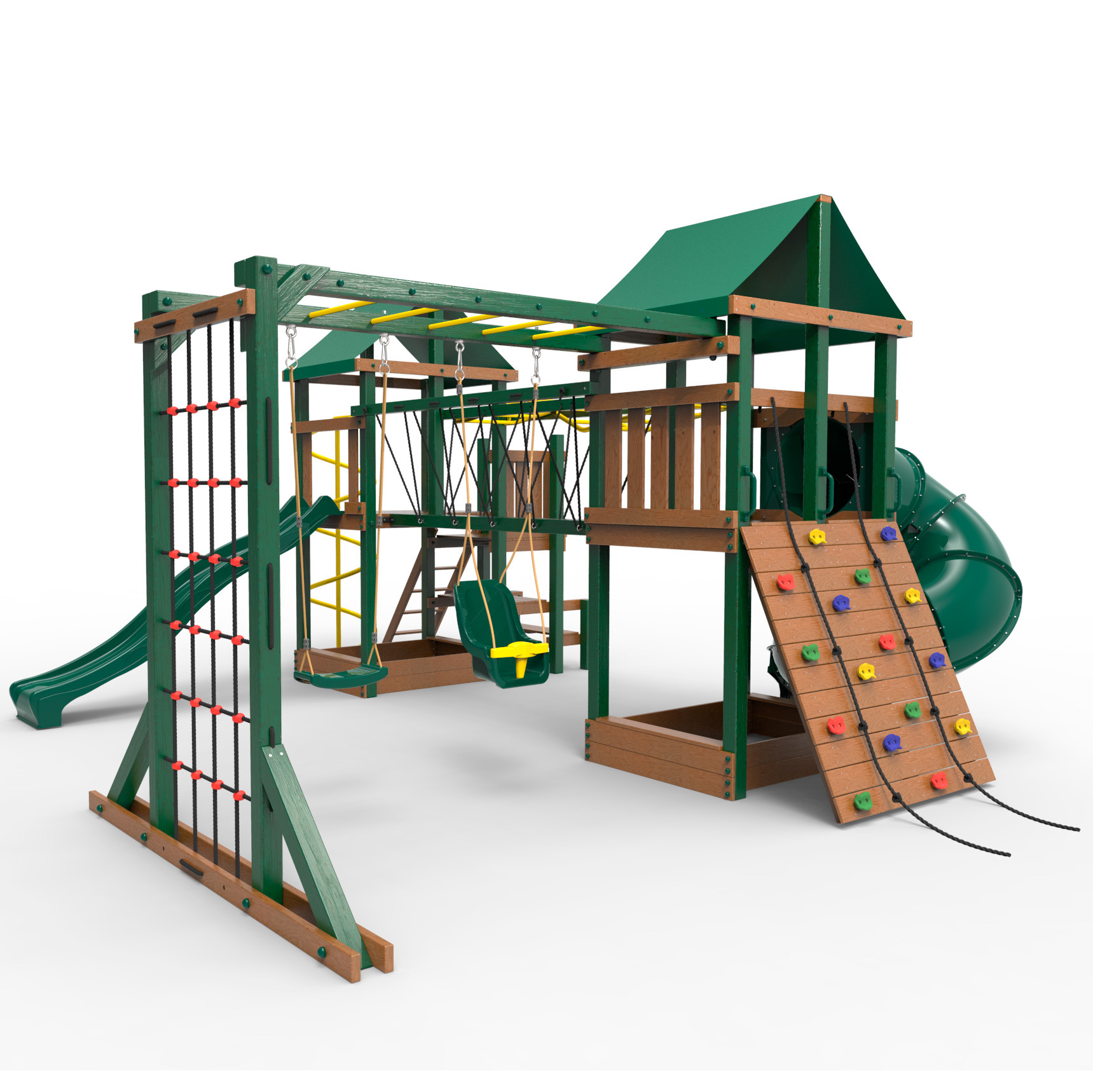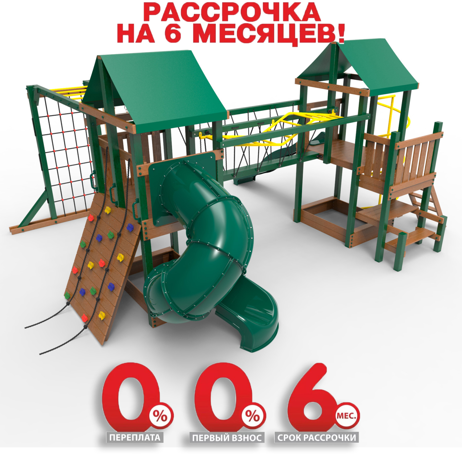 Обращаем Ваше внимание, что фактический цвет детской площадки может отличаться от представленных фото на сайте. Специфика окраски нетоксичными пропитками и красителями допускает отклонения в цветовой гамме отгружаемых изделий. Также обратите внимание, что фактический цвет может отличаться из-за цветопередачи устройства на котором Вы смотрите фото. Производитель оставляет за собой право менять цвет отдельных деталей и комплектующих(включая пластик, канаты и пр.), при этом сохраняя весь функционал и характеристики товара.