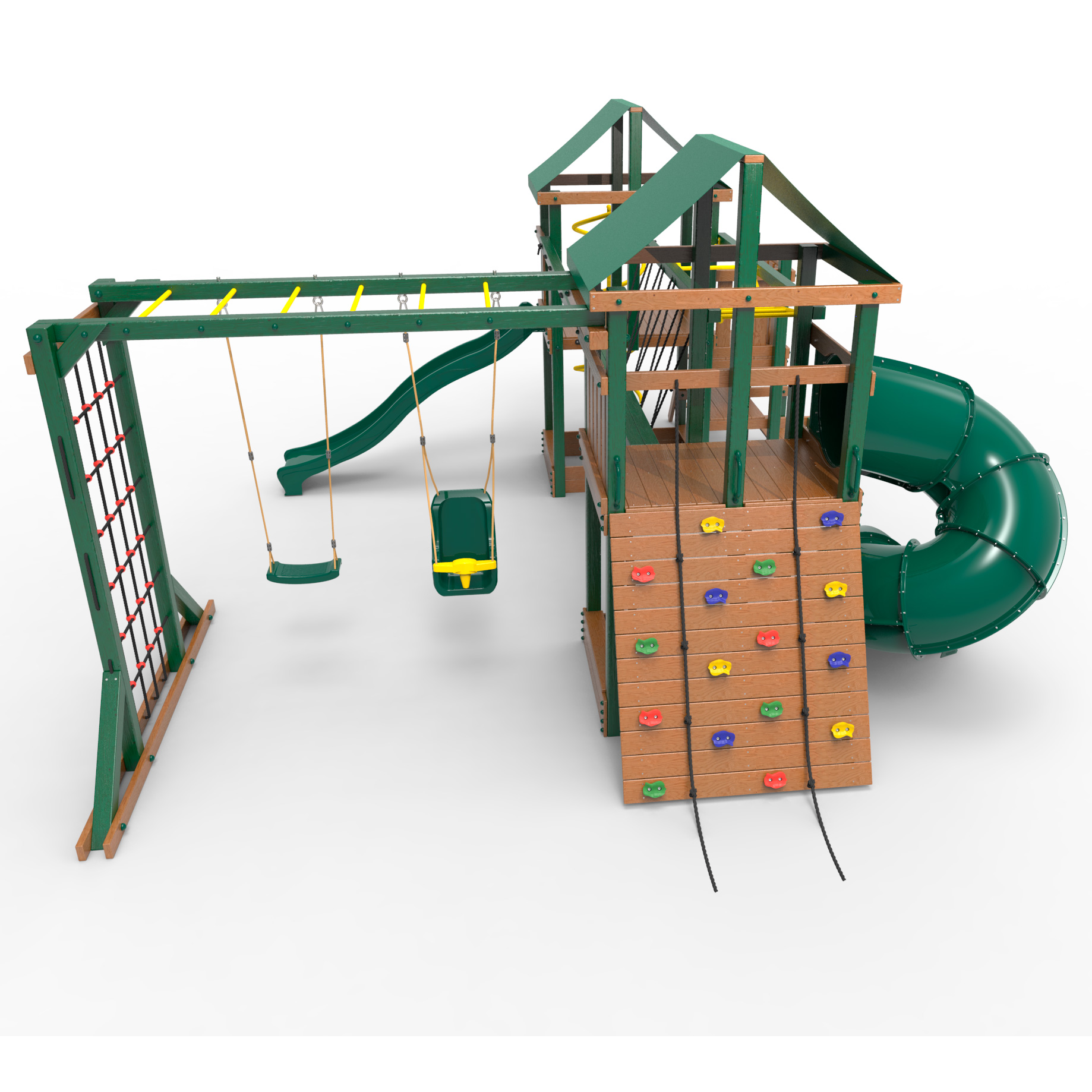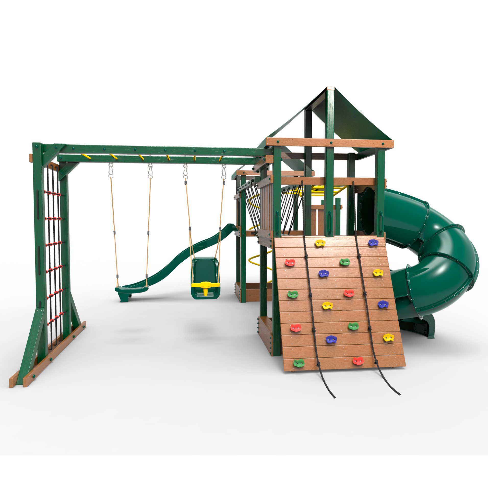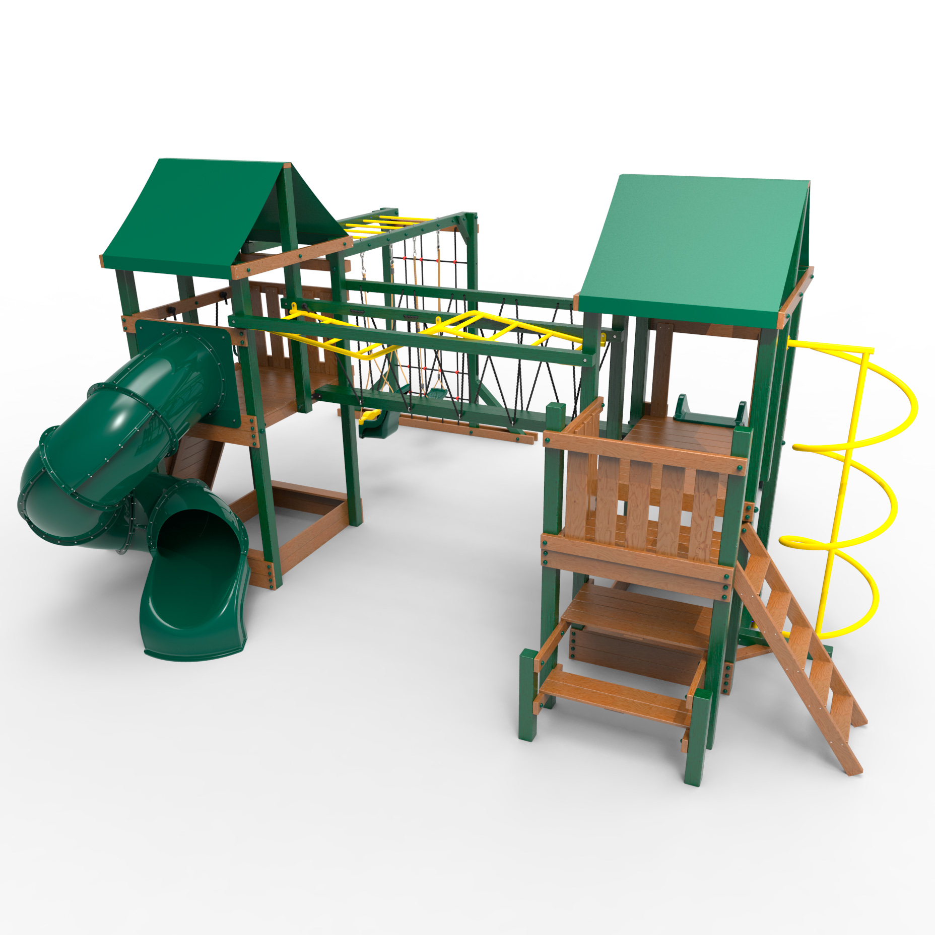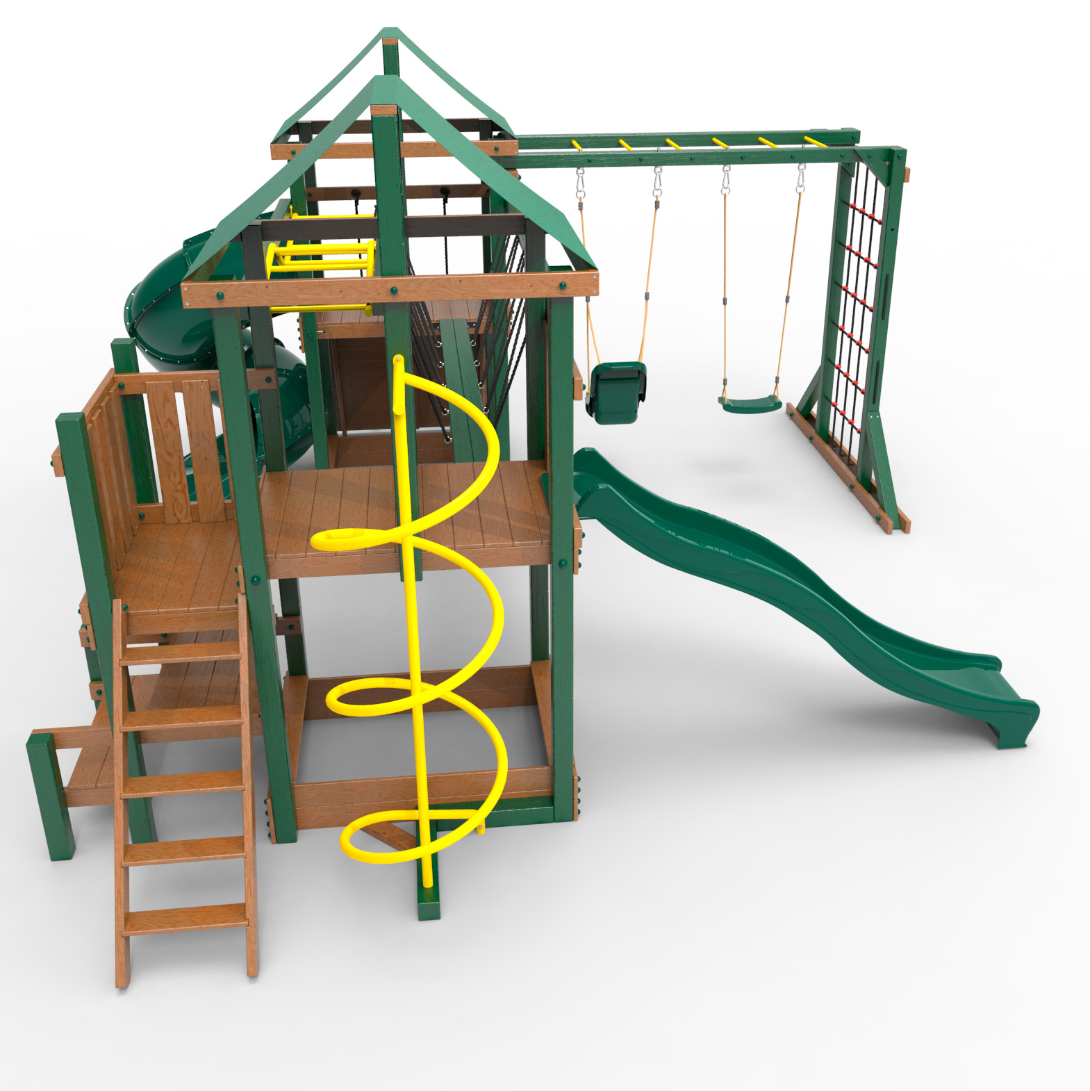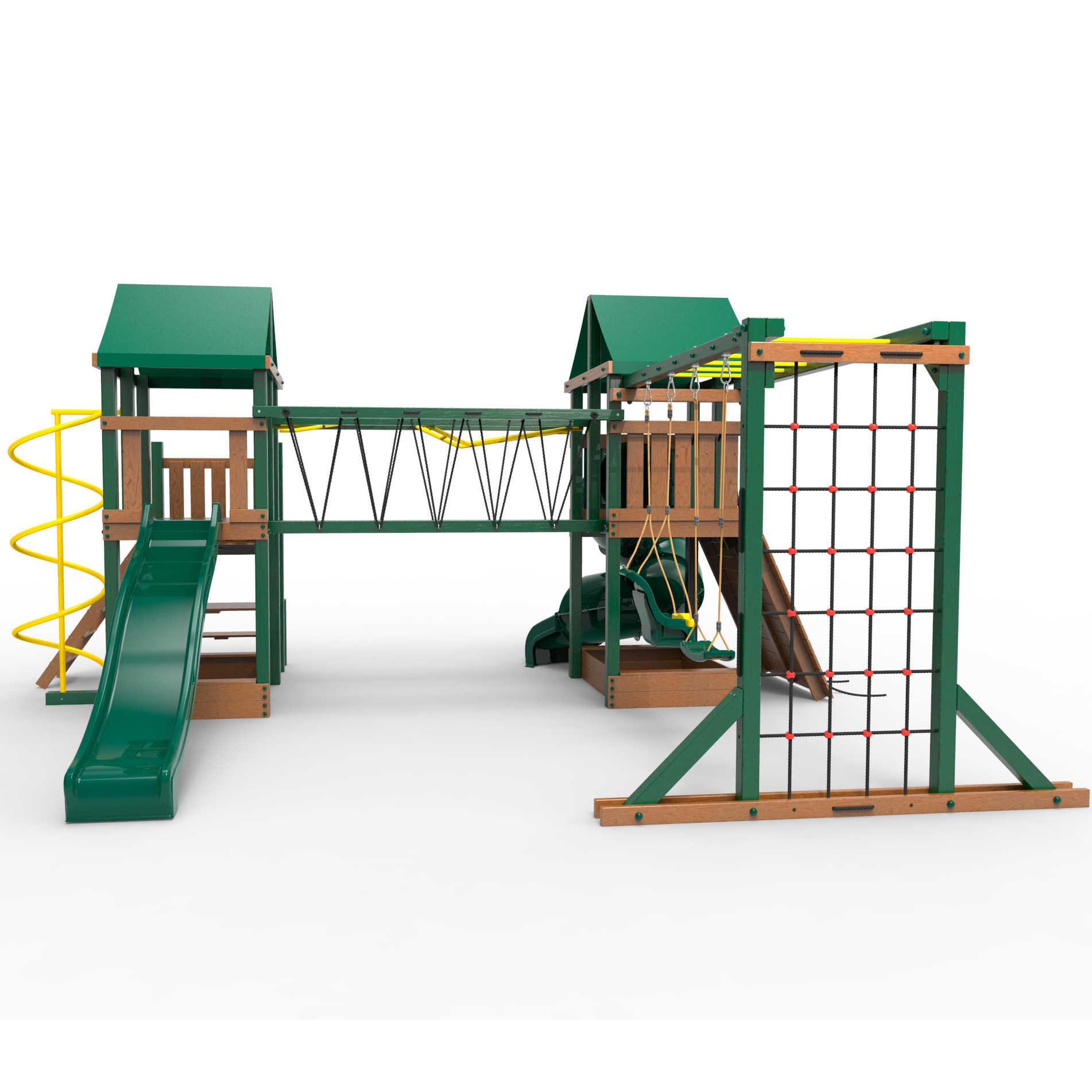 Обращаем Ваше внимание, что фактический цвет детской площадки может отличаться от представленных фото на сайте. Специфика окраски нетоксичными пропитками и красителями допускает отклонения в цветовой гамме отгружаемых изделий. Также обратите внимание, что фактический цвет может отличаться из-за цветопередачи устройства на котором Вы смотрите фото. Производитель оставляет за собой право менять цвет отдельных деталей и комплектующих(включая пластик, канаты и пр.), при этом сохраняя весь функционал и характеристики товара.