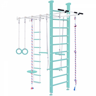 Комплектация: турник вер.лестница, качель, трапеция, лиана кольца, тарзанка, канат,