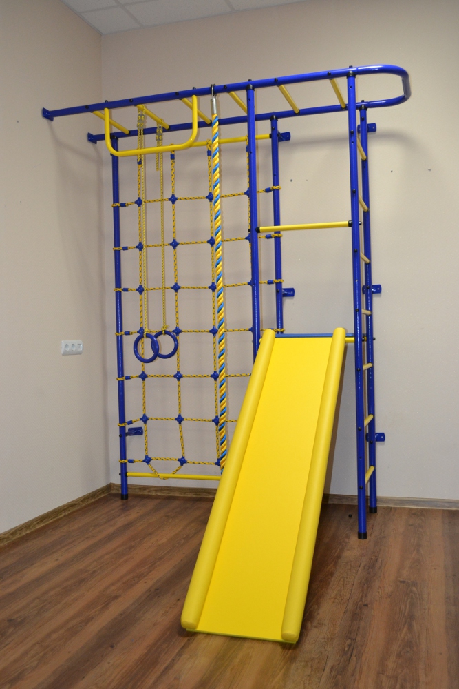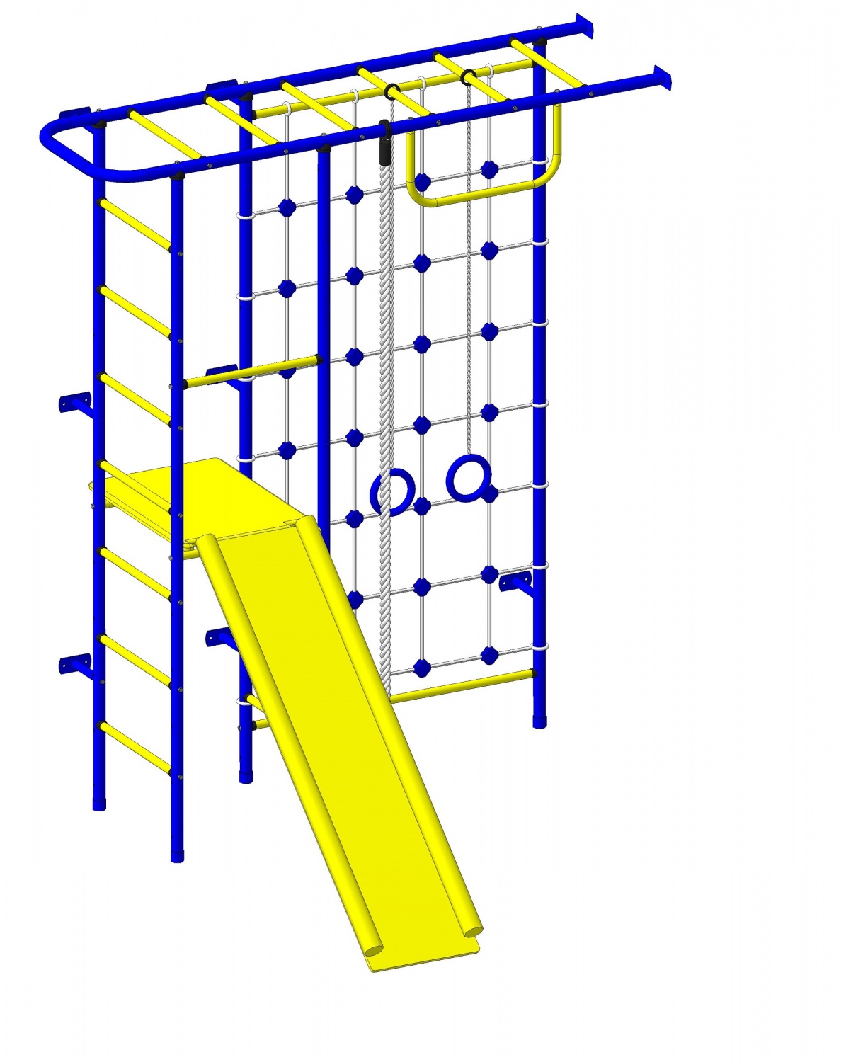 Комплектация: канат, кольца гимнастические, сетка для лазания, горка.