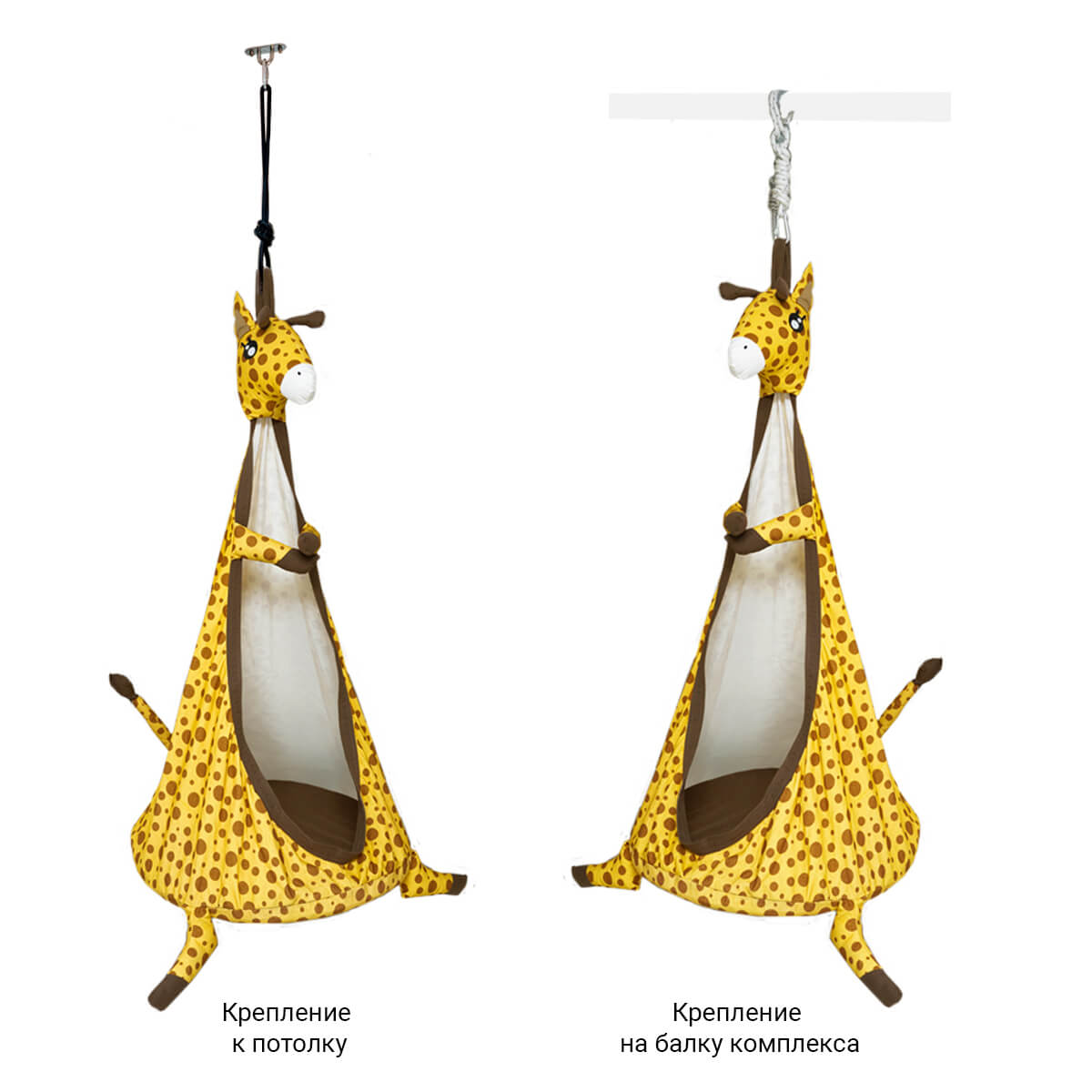 Гамак можно установить к потолку или на рукоход шведской стенки Romana (на модели S4,S7,R4), а также на дачный комплекс. Крепежи надежно фиксируют гамак, обеспечивая безопасность ребенка во время взаимодействия с ним. Шнуры для подвеса выполнены из прочных материалов: черный шнур из нейлона, бело-серый шнур из полипропилена.