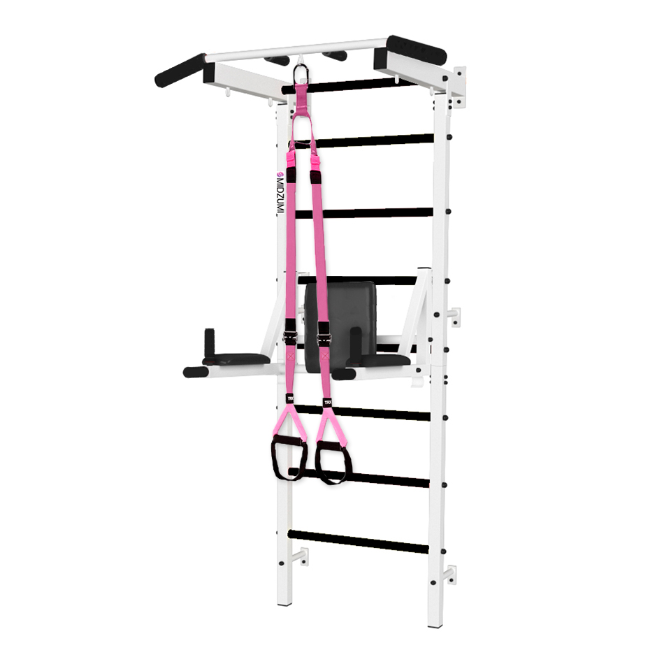 Модель Sakura из профессиональной серии Mdzumi станет не просто личным тренером, но и займет достойное место в любом интерьере Вашего дома. Легкий бело-черный дизайн классической металической шведской стенки дополняют розовые TRX. Металлическая шведская стенка имеет турник и брусья-держатель штанги и петли TRX которые крепятся к спортивному комплексу и позволяют выполнить множество упражнений, на развитие мышц пресса и рук. Легко собирается и при необходимости может быть дооборудован любыми аксессуарами (Предусмотрены специальные проушины для крепления любых снарядов и аксессуаров). Прочная металлическая конструкция позволяет выдерживать до 250 кг. Рассчитан в первую очень на занятия взрослому, но возможно заниматься и ребенку.