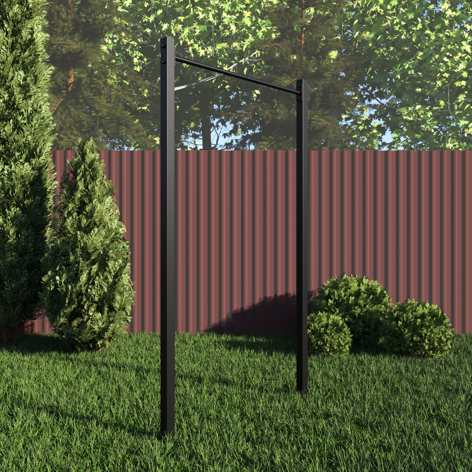 Уличный турник Sv Sport изготовлен из профильной трубы 60 х 60 х 3 мм и круглой стальной трубы d 33,5 мм и толщиной 2,8 мм. Окрашен качественной, импортной порошковой краской в 2 этапа, устойчивой к коррозии, истиранию и температурным перепадам. Все торцы, болты, гайки заглушены пластиковыми заглушками. Устанавливаются стойки путем бетонировки на глубину не менее 600 мм.