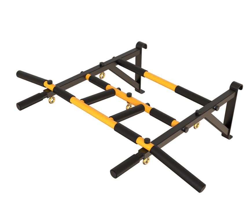 - Универсальный турник, который имеет 6 видов хвата (классический средний на ширине плеч, узкий параллельный, широкий хват, широкий параллельный + 2 дополнительные перекладины рукохода). Обратите внимание , что специальные рукоятки есть на всех хватах. На нем можно комплексно тренировать мышцы спины и рук.