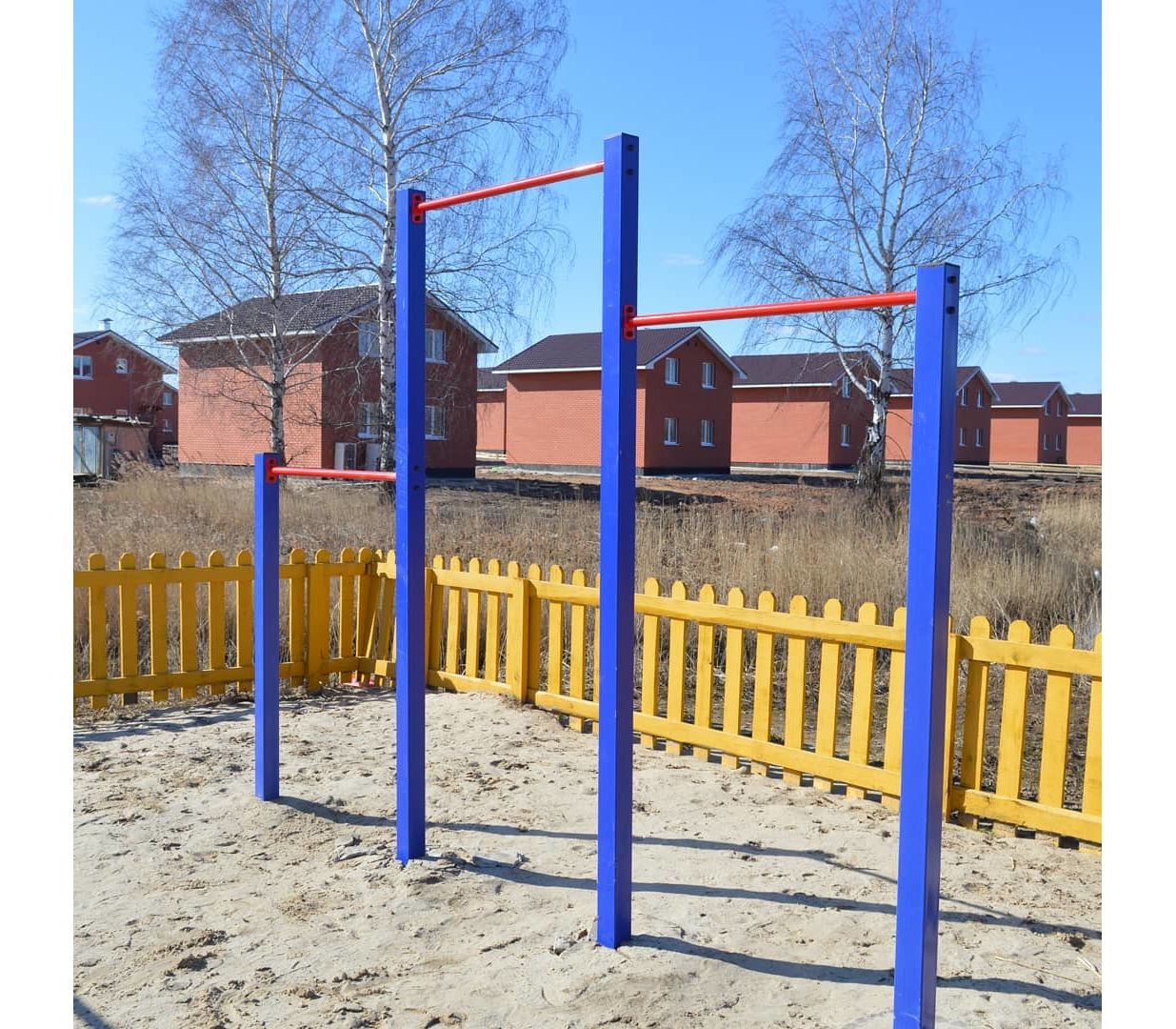 - Изготовлен из стали, надежно защищен порошковой покраской от коррозии и воздействия солнца, мороза и осадков. Ножки турника бетонируются для надежной фиксации.